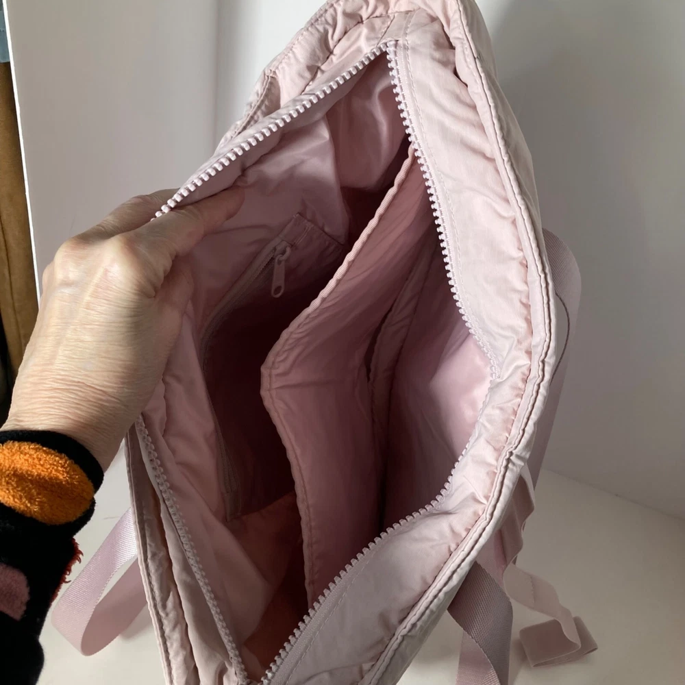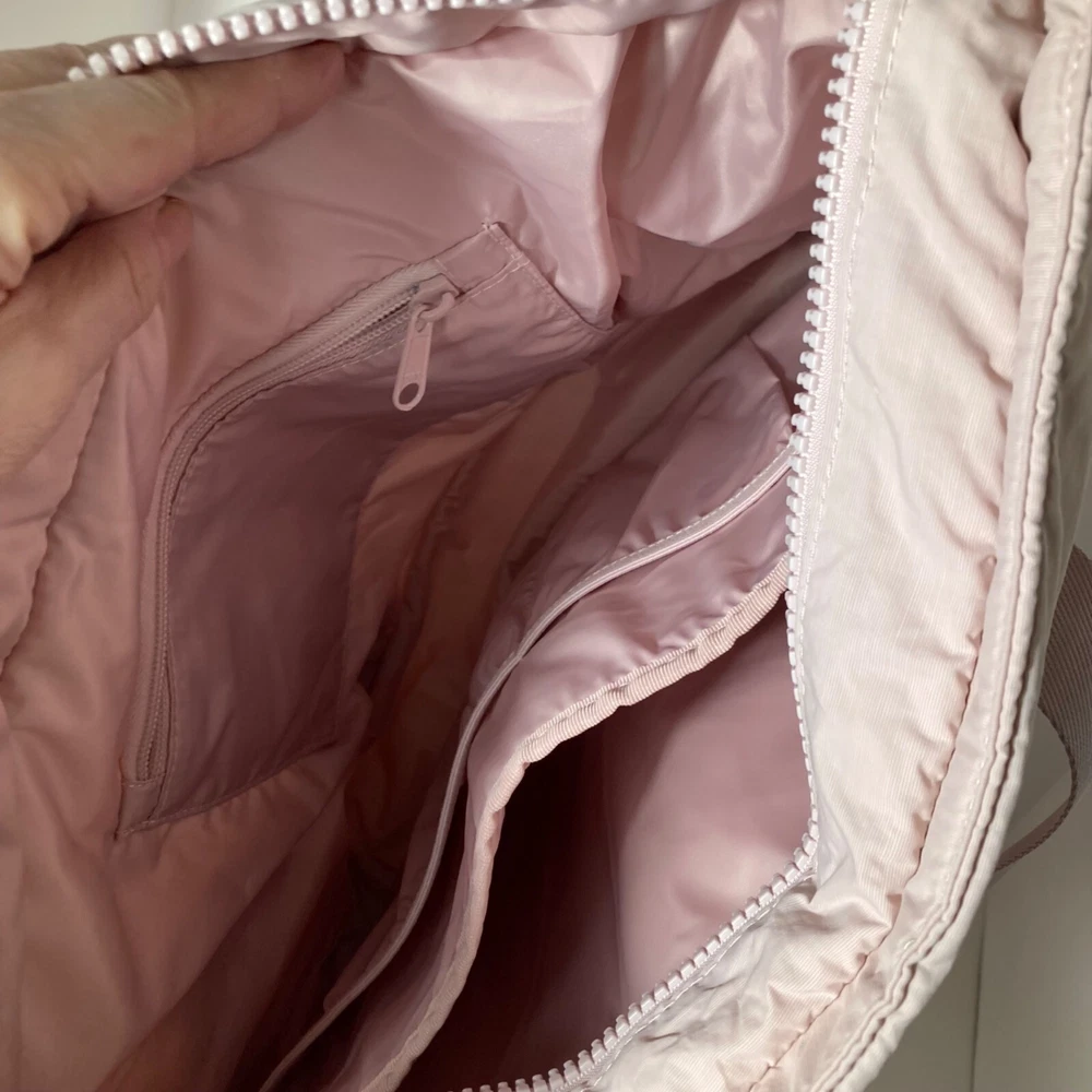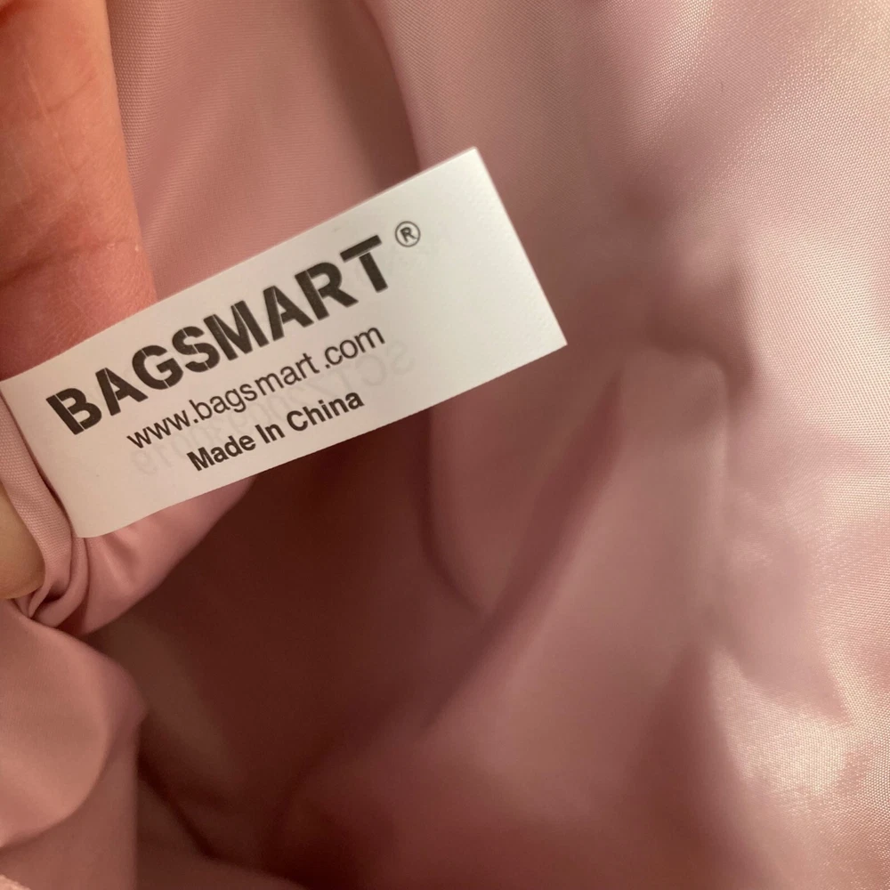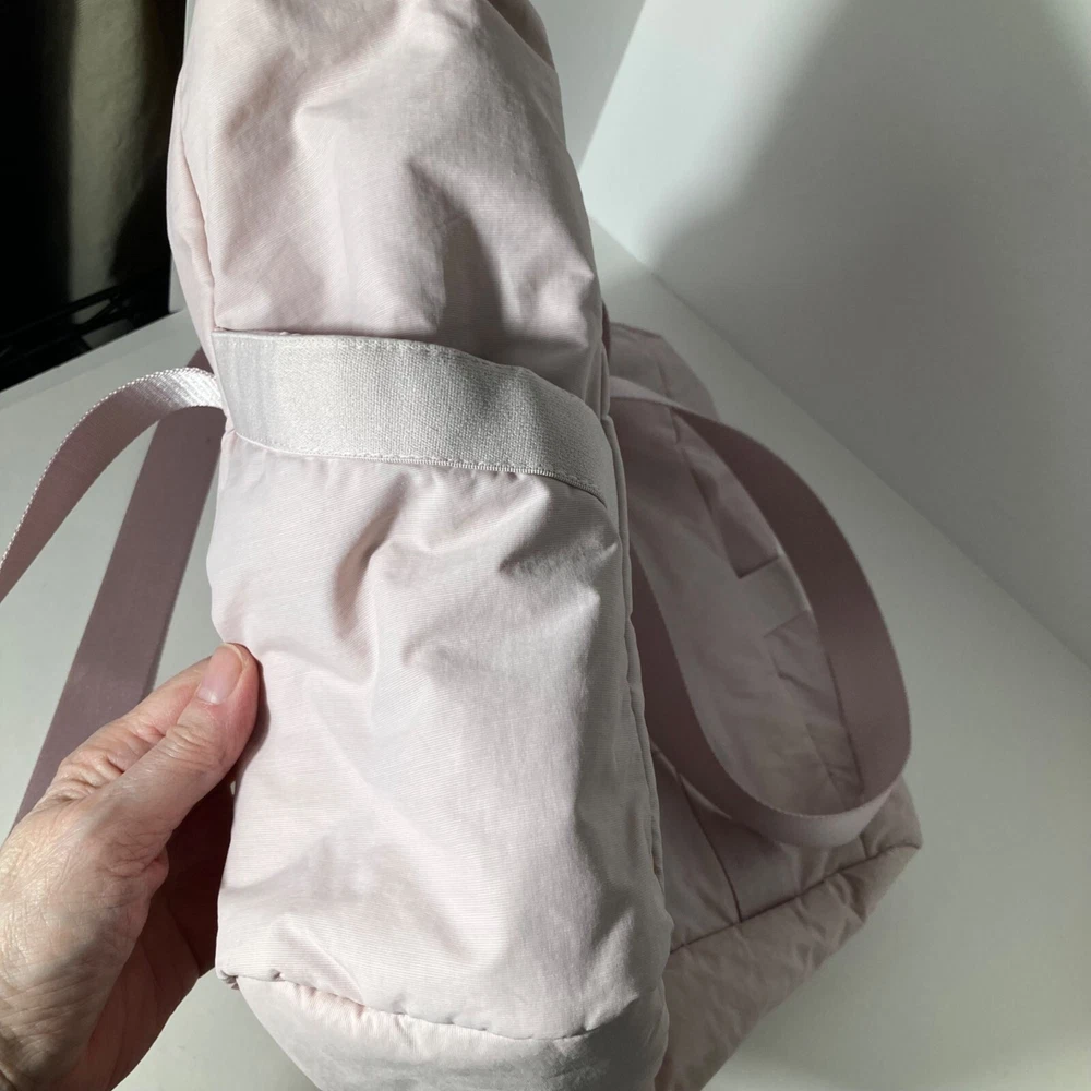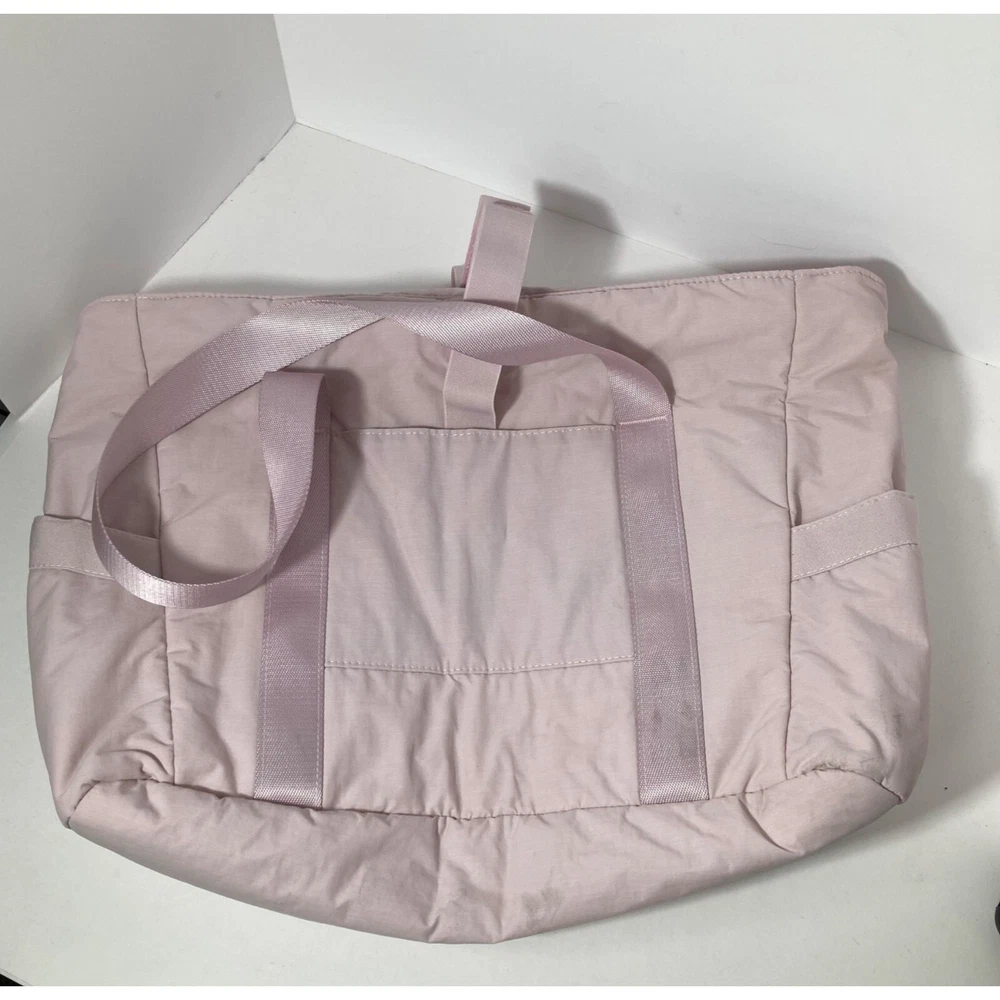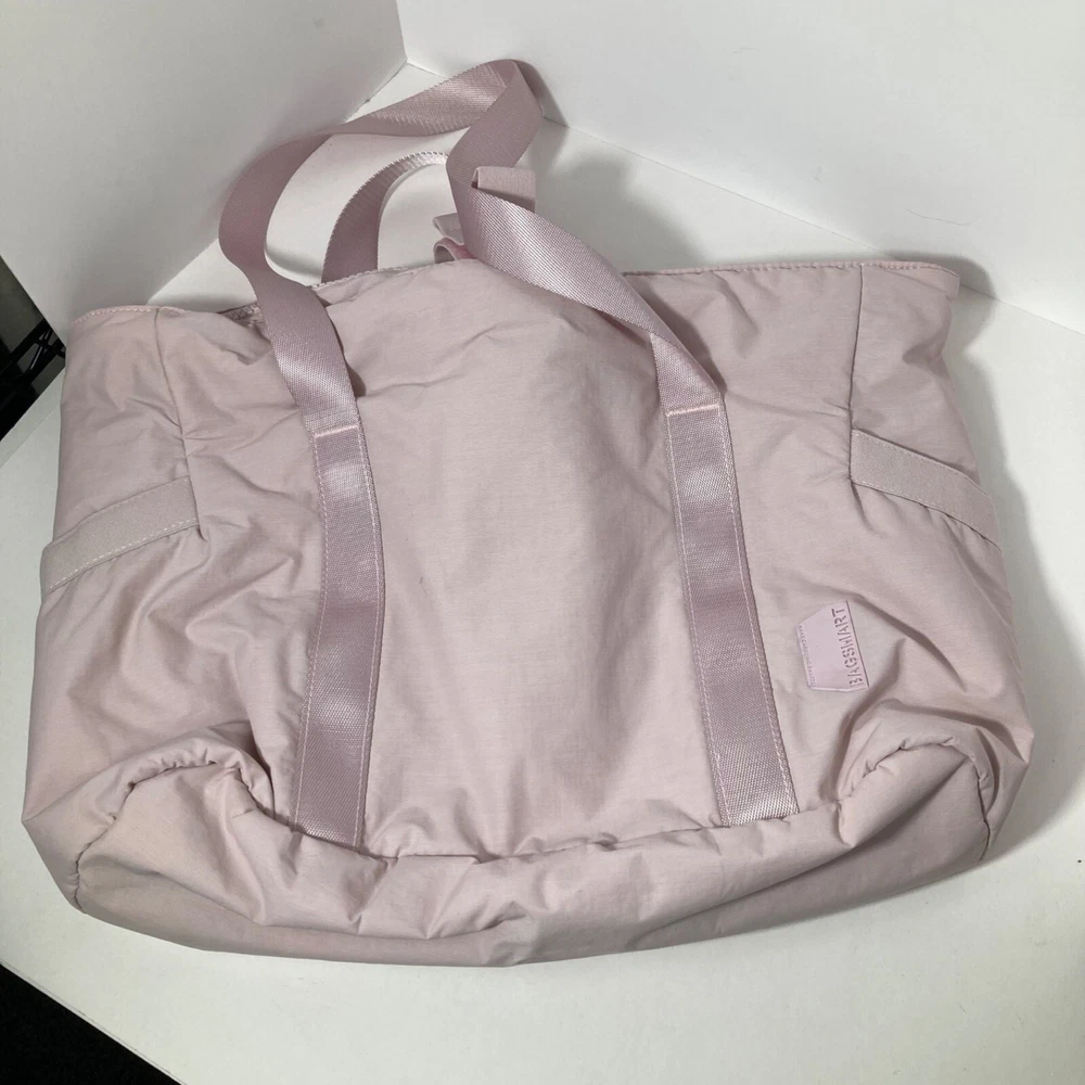 Bagsmart Zoraesque Duffel Medium Bag Pink Yoga Mat Strap, No shoulder Strap 12 x 14 x 5" Very Soft and puffy Preowned in good condition Some light spots per pics, did not treat Size: 12 x 14 x 5" Condition: Pre-Owned Good