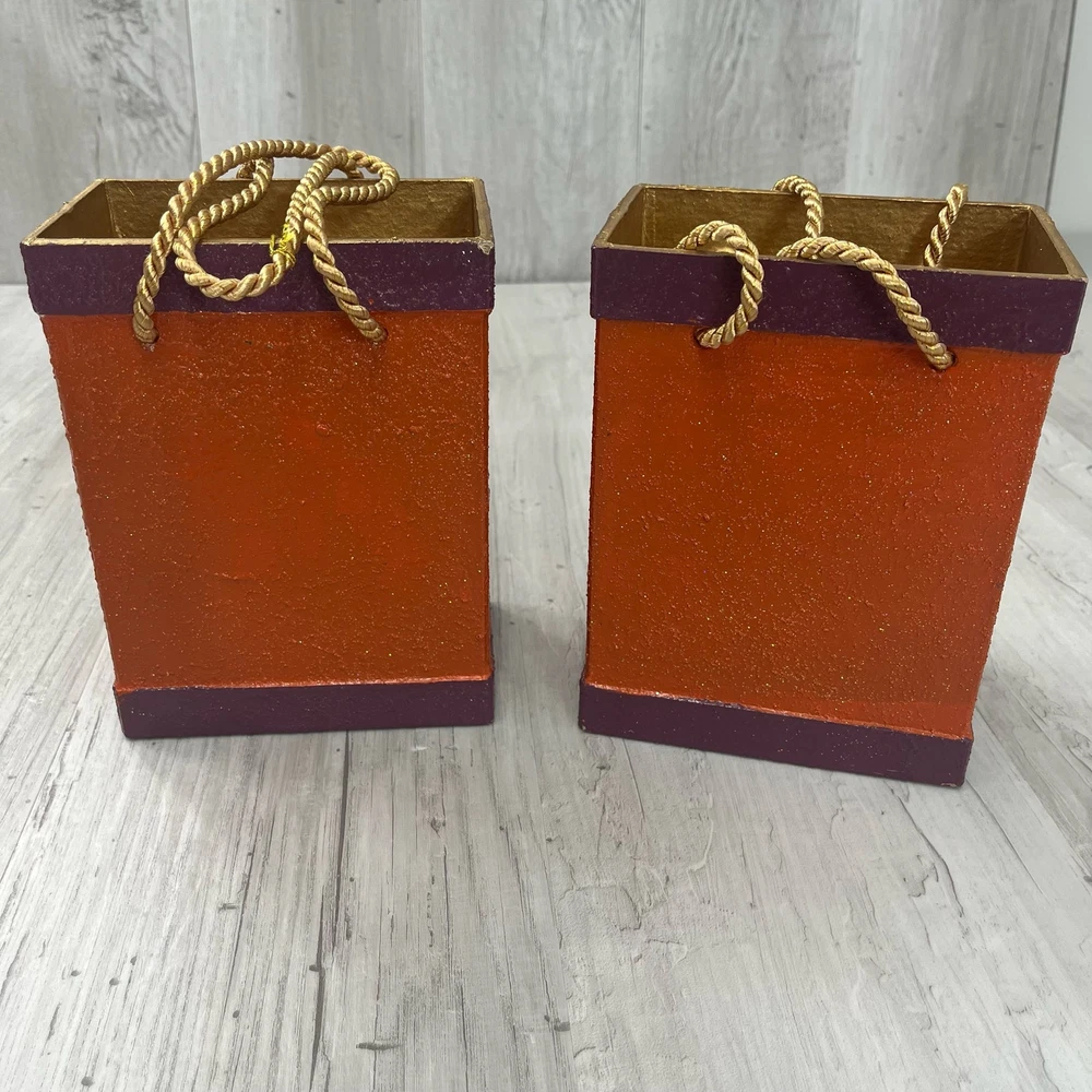 Balasi Export Handmade Pair Of Holiday Tree Textured Ceramic Bags Handmade in Southern Philippines Bottom of one has peeling paint from sticker 7.5" Tall 5.75" Wide Additional measurements available upon request All measurements are approximate All measurements are taken with item laying flat Double bust, waist, & hip for measurement all the way around Colors may differ based on others computer/phone/etc settings All pre owned items have been washed and steamed All pre owned items have been looked over for flaws and will be noted in listing