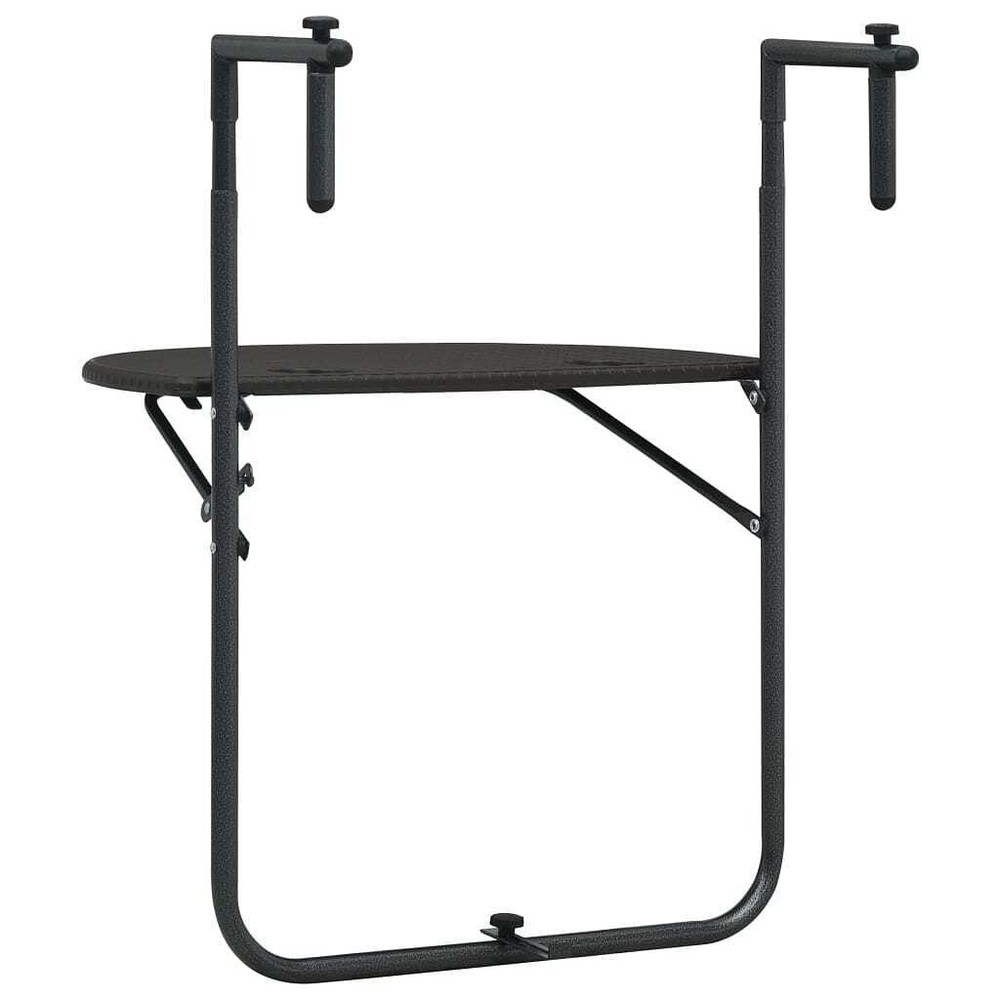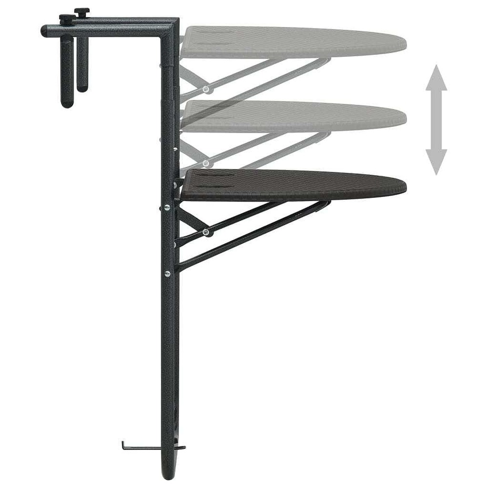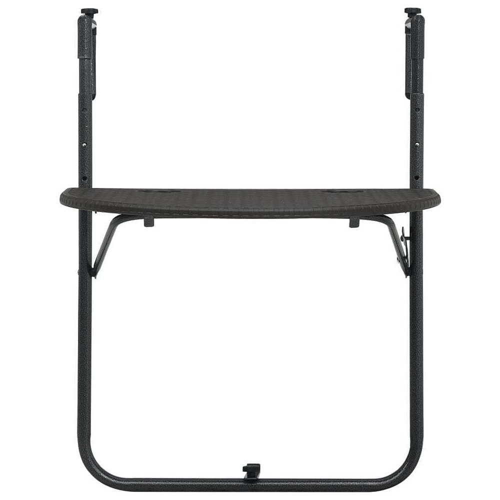 Size: Medium This adjustable folding balcony table mixes functionality with a bit of flair, perfect for outdoor hangout sessions. Its modern style and woven texture add a classy vibe, making it a fab choice for small balconies or cozy patios where every bit of space counts. Generous Surface: The table's surface is 23.6 by 15.6 in, ideal for coffee cups and small items. Solid Frame: Made from sturdy steel for lasting support and stability. Versatile Use: Whether for coffee outdoors or as a charming plant stand, it suits your needs. Weather Resistant: Built with UV resistant materials, it stays durable against the elements. Modern Design: The trendy woven pattern complements various outdoor decors perfectly. Color: Brown Pattern: Basketweave (A pattern that looks like the crisscross of a woven basket) Shape: Rectangular Material: Synthetic Plastic Finish: Matte Indoor/Outdoor: Indoor / Outdoor Cover Included: No Room: Garden and terrace Capacity: Perfect for drinks and small gear Mounting Included: All included to mount Dimensions: 25.2 x 23.6 x 32.9 in (W x L x H) Min-Max Dimensions: 28.7-32.9 Weight: 6.06 lbs Delivery Contains: 1 folding balcony table Assembly Required: Yes Recommended Number of People for Assembly: 1