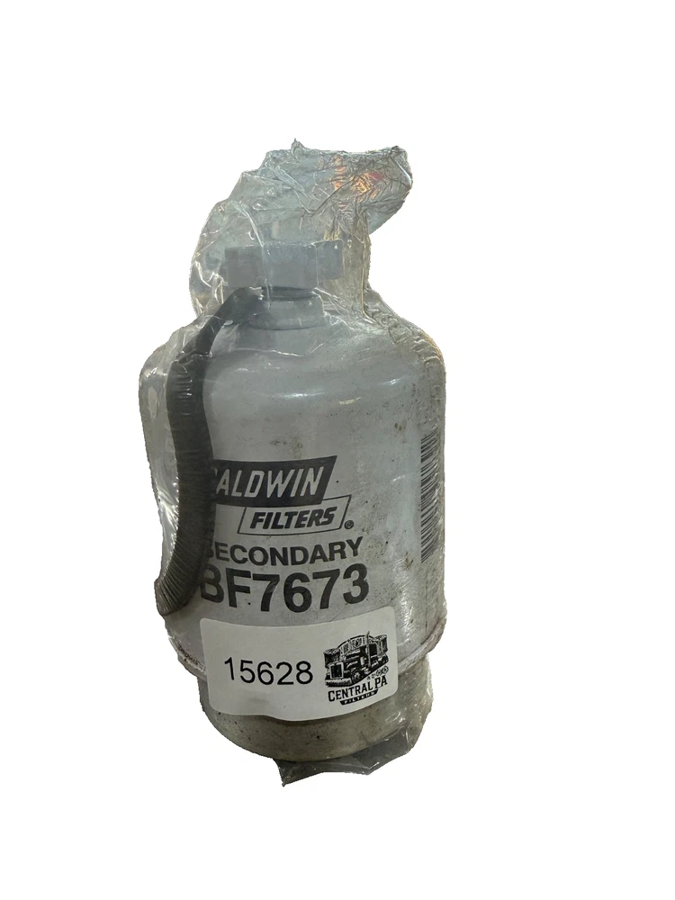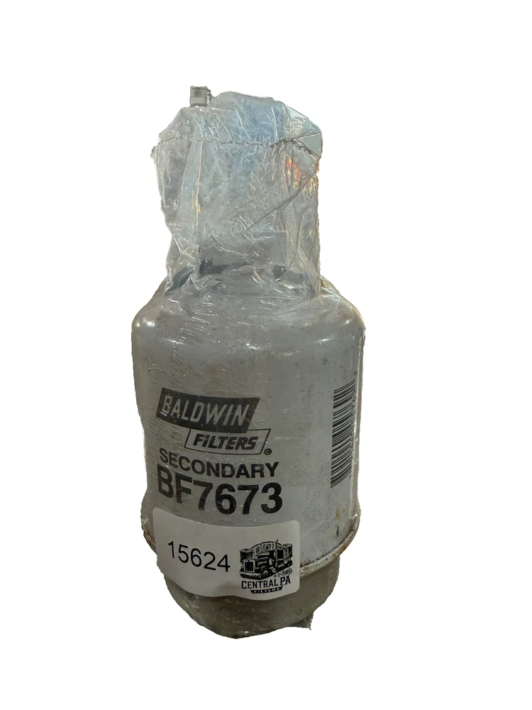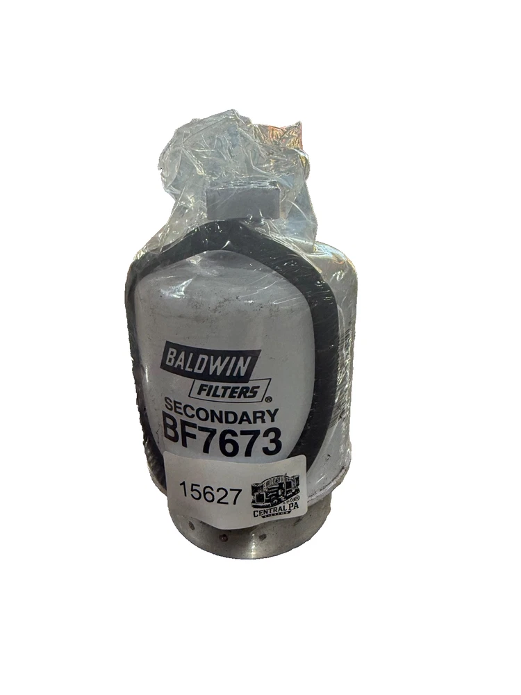 The Baldwin Fuel Filter BF7673 is a high-quality, metal filter designed for easy installation on the front of a vehicle. Made in the United States, this fuel filter features a painted finish and comes with a rubber gasket for a secure fit. The clamp-on mounting style ensures a stable connection, while the manufacturer warranty guarantees reliability. With rust spots noted as a condition, this filter still provides efficient filtration for your vehicle's fuel system.