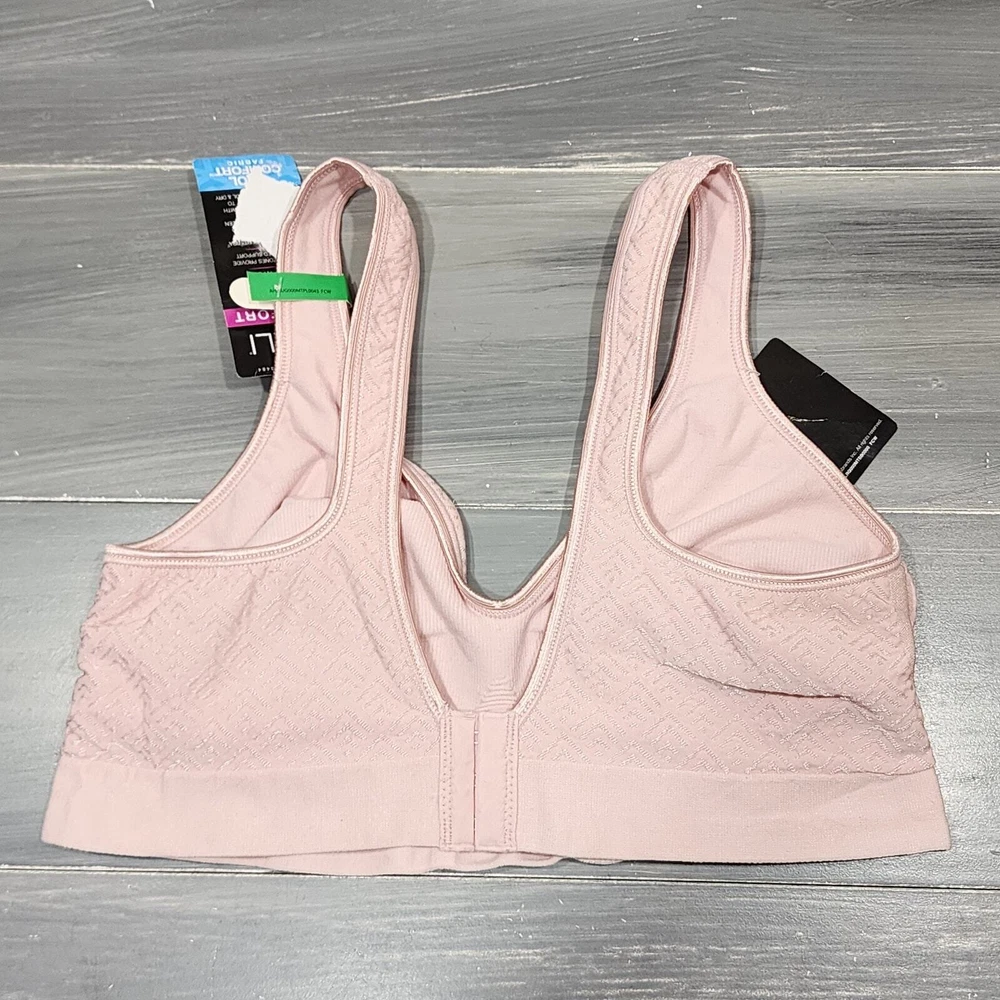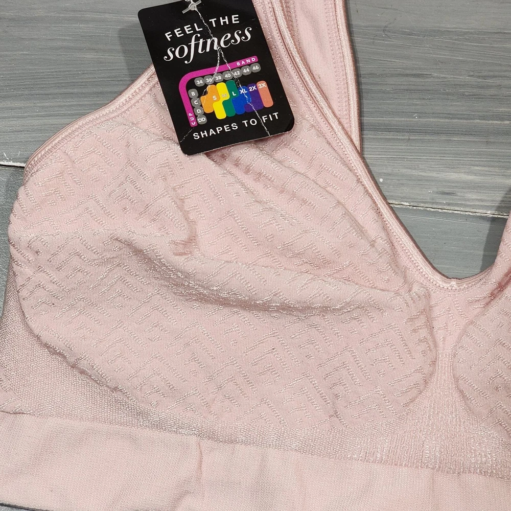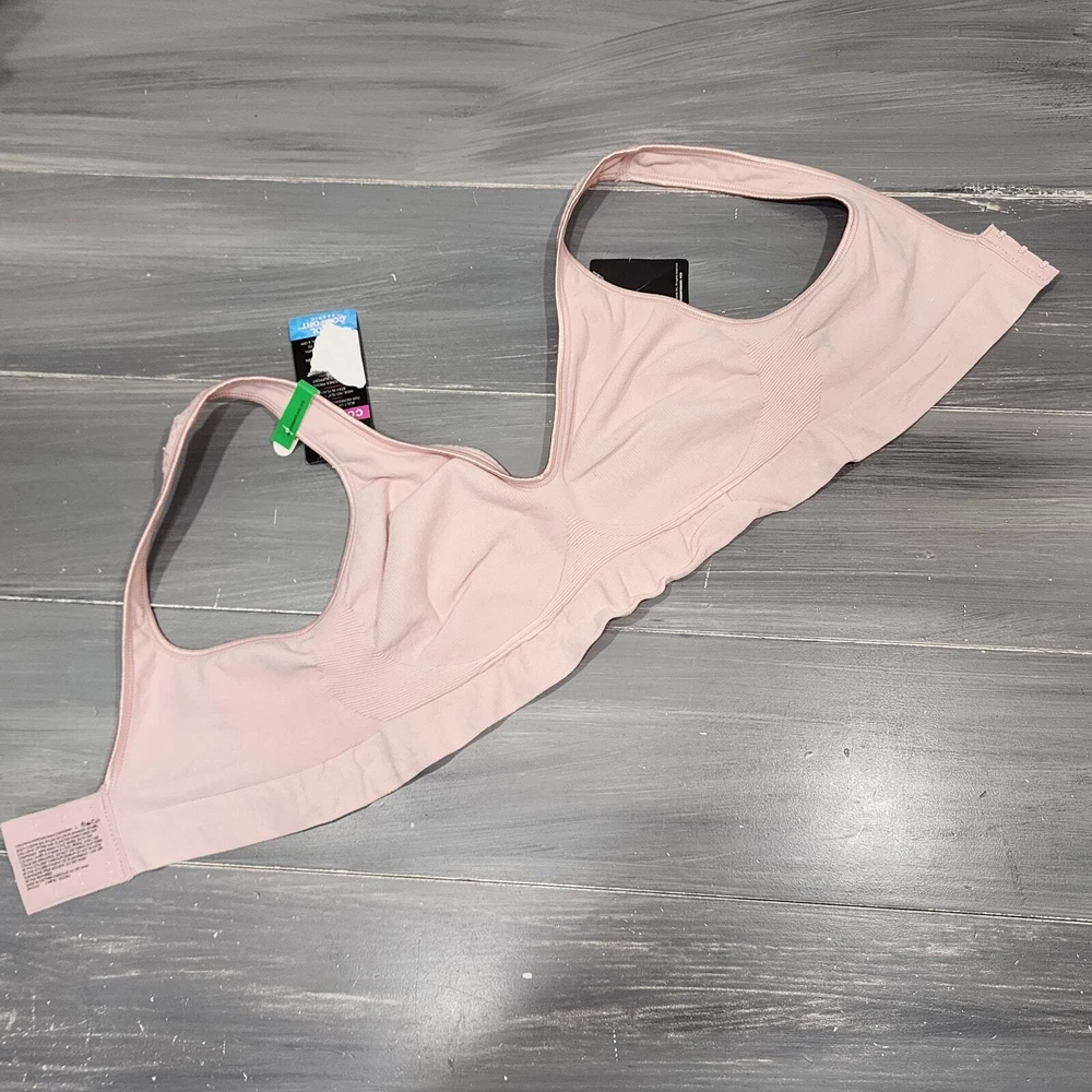 Bali Seamless Wireless Bra Comfort Revolution ComfortFlex Fit 3484 Large Nude FLAW: has some very light surface dirt or dye transfer on the inside strap. may or may not come out when washed, see 2nd photo. Wirefree 2 ply Stretchy stay-in place straps Wide, adjustable straps Full coverage full-figure fit Seamless unlined New with tags. Paper hang tag may be torn or have tape or stickers attached/detached Flaw as noted Inv# E221