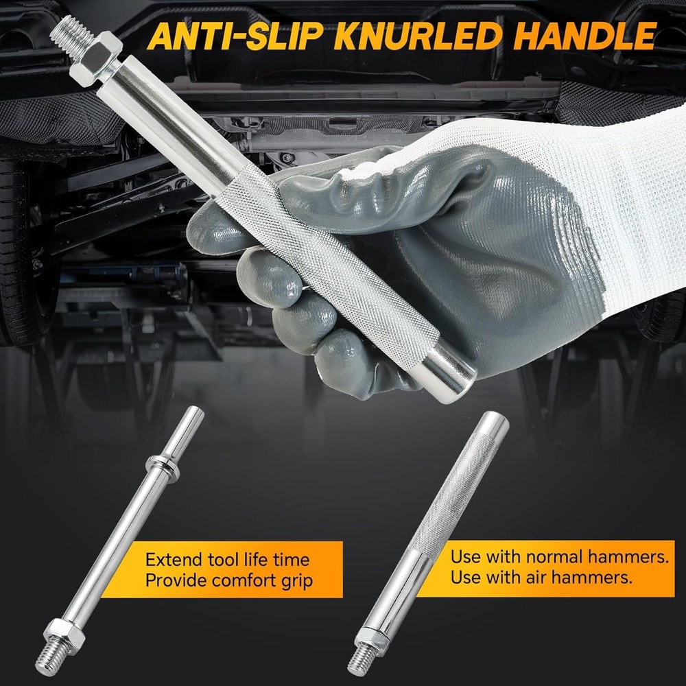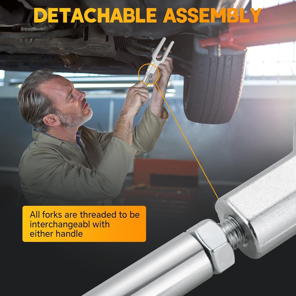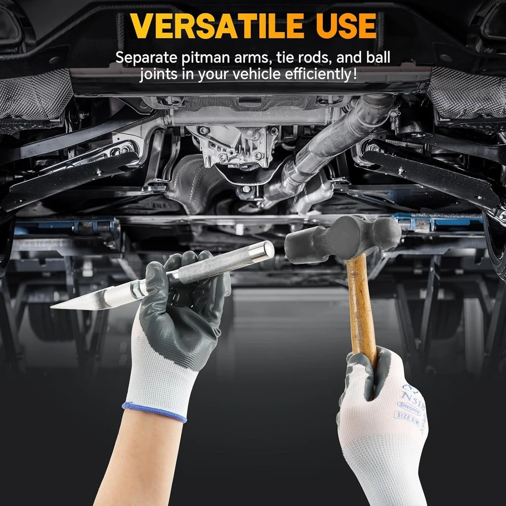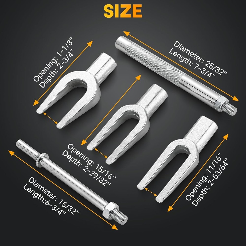 Free eBay listing template designed by dewiso.com Ball Joint Separator Set | 5PCS Pickle Fork Splitter Kit Tie Rod Tool Set Ball Joint Tie Rod Pitman Arm Remover Separator Set for Cars and Light Trucks FREE AND FAST SHIPPING! 【Reliable Function】 The weyleity pickle fork splitter kit is a perfect choice to separate pitman arms, tie rods, and ball joints in your vehicle.This tie rod tool set saves you time and boosts efficiency during your work, catering to the needs of both professional machinists and beginners. 【Durable Construction】 Crafted from forged and heat-treated 45# steel, our ball joint separator tool set offers superior strength and durability. Chrome-plated surfaces protects against corrosion and rust, ensuring prolonged service life. 【Easy to Grip】 The knurled handles of pitman arm separators ensure a secure hold, offering precise control over your work without slipping. Two different sized handles in tool set can be used with both normal hammers and air hammers. 【Wide Compatibility】 This pitman arm remover set comprises three varying sizes of forks. Additionally, the pickle fork splitter offers two arms of different lengths that can be attached to each fork. The forks in ball joint tool set are designed to interchange with either handle, facilitating the removal of standard-size ball joints, tie rods, and pitman arms from various cars and light trucks. 【Packages Included】 1 x tie rod spreader with 11/16" (17.5mm) wedge opening; 1 x ball joint separator with 15/16" (23.8mm) jaw opening; 1 x pitman arm wedge with 1-1/8" (28.6mm) opening; 1 x 7-3/4" (196.9mm) Kunrled striking handle for use with conventional hammers; 1 x 6-3/4" (171.5mm) adapter handle for use with air hammer; 1 x Carrying case. Product We offer a 30-Day Return Policy on items which you are not completely satisfied with. You have the option for a full-refund or an exchange of the item. No returns are available on items shipped outside of the US . Shipping We offer Free Shipping to the US and ship within 2 business days of payment, usually sooner. We use UPS express shipping. That's why your products are usually delivered within 3 days . Contact We try our very best to make sure every customer is completely satisfied. If there's a problem , message us! We're happy to help. 24/7 live chat available.