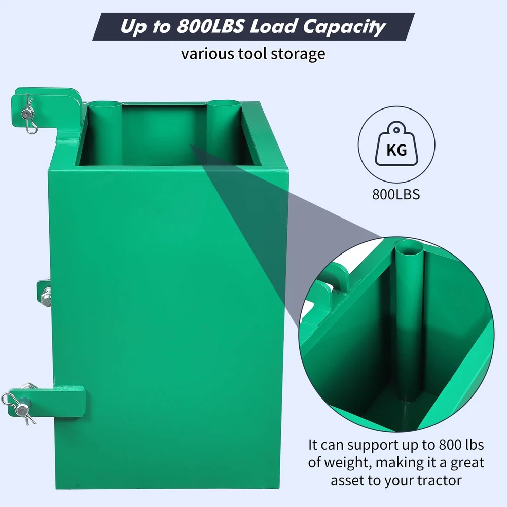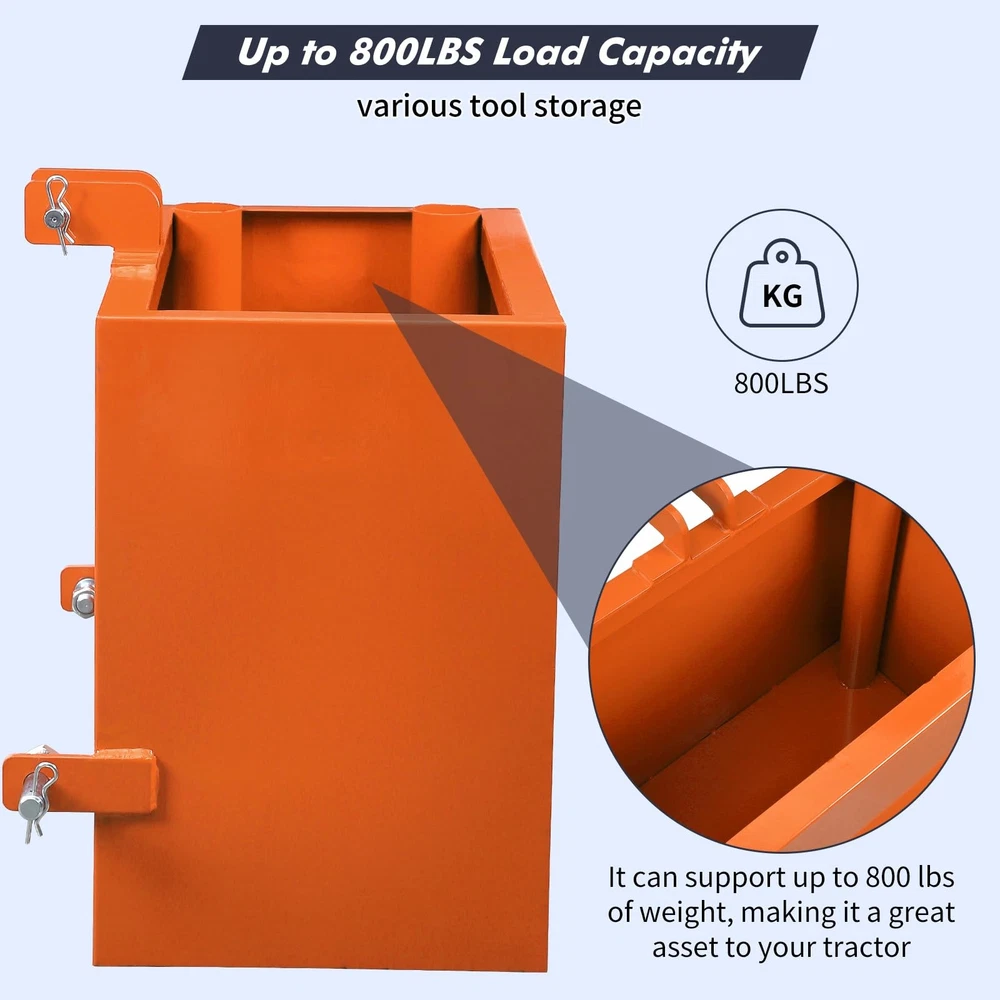 Ballast Box ,3 Point Steel Hitch Weight Box for Cat 1 Tractor 800LBS Heavy Duty