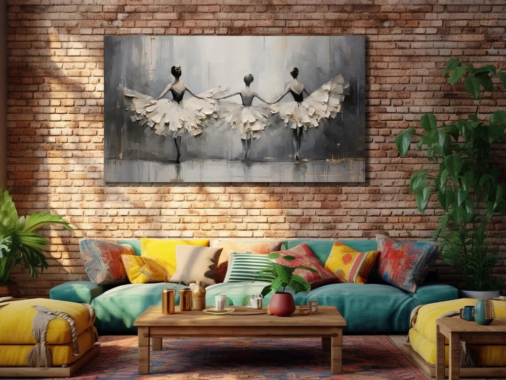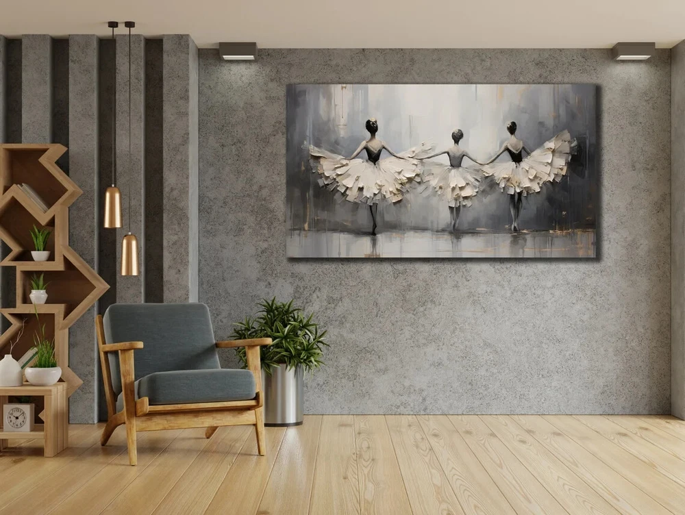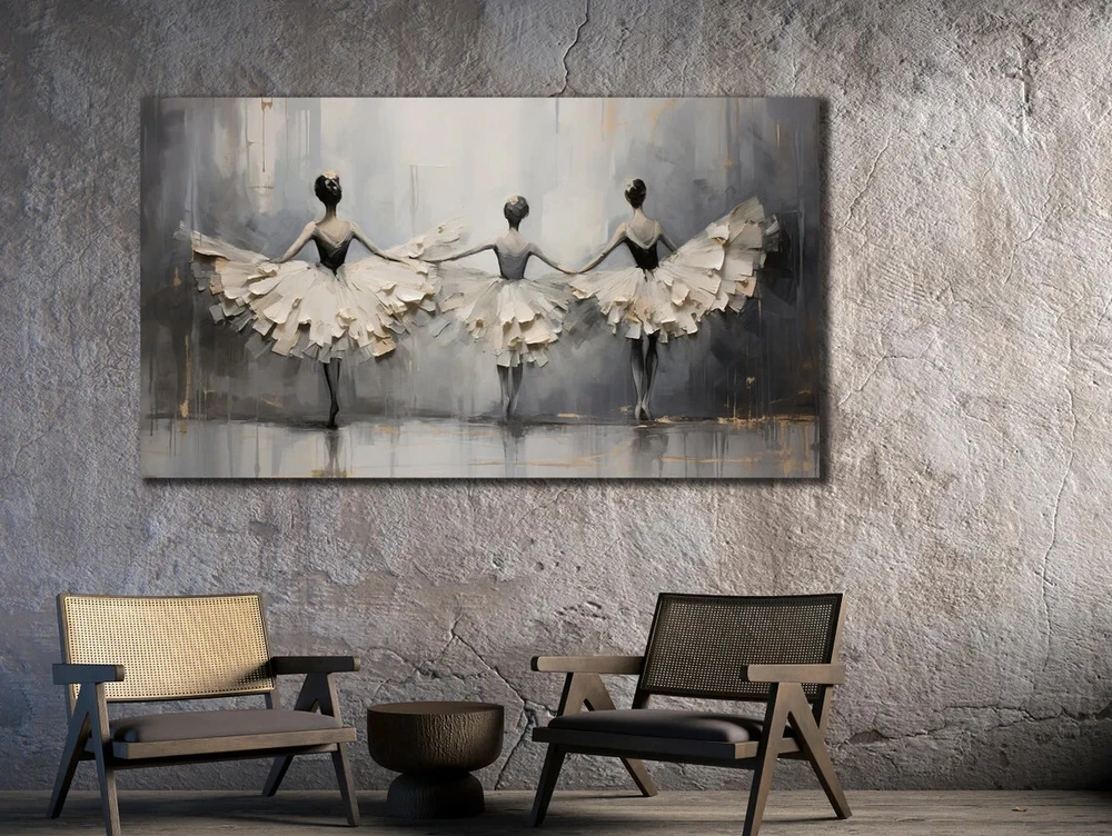 Ballerina Dancers Grey White Abstract Unframed Canvas Print Australian Wall Art