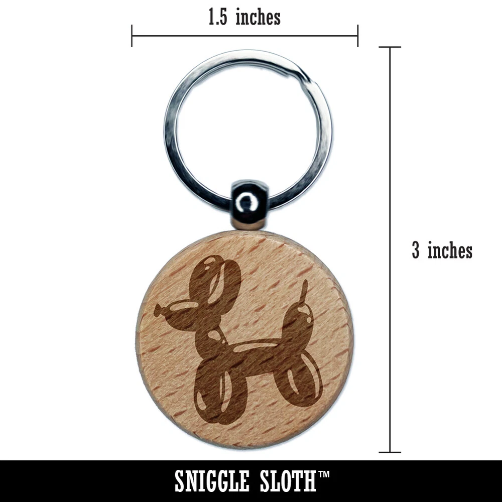 Balloon Animal Dog Engraved Wood Round Keychain Tag Charm