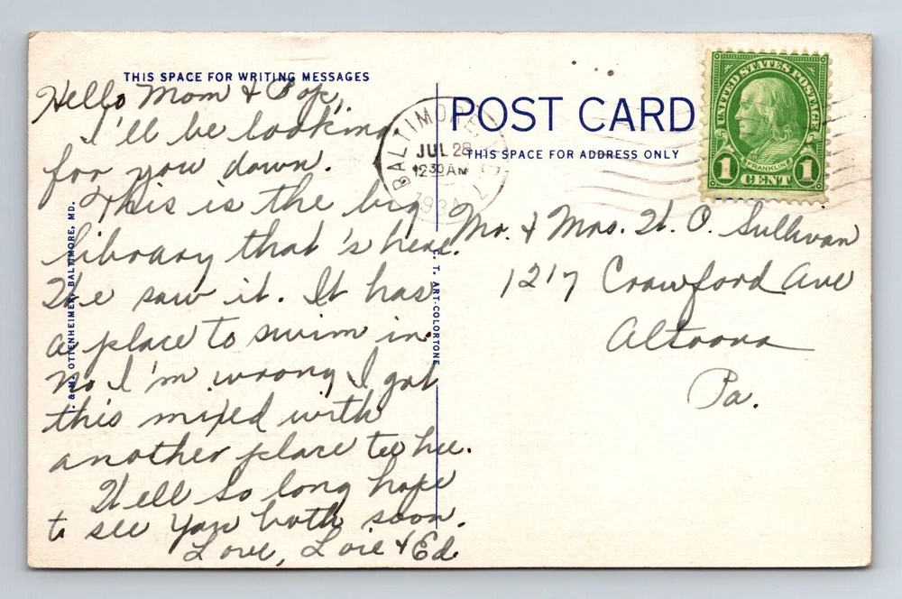 Type: Printed (Lithograph) Subject: Cities & Towns Region: Maryland Theme: Cities & Towns Country: USA Original/Licensed Reprint: Original Postage Condition: See Image Era: Linen Country/Region of Manufacture: Unknown Unit of Sale: Single Unit City: Baltimore