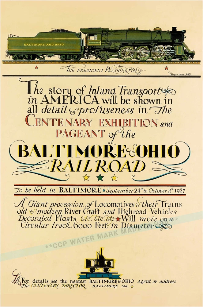 Baltimore & Ohio Railroad 1927 Centenary Pageant A very nice restored poster B & O Centennial Exhibition and Pageant of the Baltimore & Ohio Railroad in Maryland Vintage Poster Print Retro Style Restored Art **We offer Free US Postage or Reduced Postage for Canada and worldwide. **No Extra Post Charges For Multiples!! **These are not framed or stretched or mounted NOTE:**Delivery dates shown are only "Suggested" Order Early To Avoid Post Delay Dramas **Read Please: The print looks best with a nice mat (passe-partout or Passepartout) and frame. These prints are the exact proportion as the original and will not be stretched to fit the paper or canvas...this would cause a distorted print The image will be the exact aspect ratio as per the original poster, so there might be more white on the top and bottom, or side to side. Options available..use the drop-down menu *Watermark will not be on your image. *Cloth Canvas is an artist's canvas used in museums and art galleries *Photo Gloss Paper is a high-quality Professional Photo paper *Matte Photo Paper is a great solution if you do not want a Gloss, this paper is great with colors *Luster Photo Paper This photo paper is neither glossy nor mat. Glossy paper has a smooth texture, and luster paper is slightly textured. This option is a good choice for something in between Metallic, Photo Gloss, and Matte *Metallic Pearlescent Photo Paper is a very high-quality paper with a Pearlescent sheen, a glossy finish, and a unique metallic appearance, these prints have extra visual interest and depth. This paper uses a combination of film laminate layers that produce striking, dimensional, lasting images on an ultra-bright background. The effect is sometimes described as "chrome on paper." This is NOT a metal plaque, it is a photo paper This poster print will be shipped in a sturdy container. We will ship usually within 24 business hours of payment, except for weekends or US Holidays If there is a question, please do contact me The delivery date given on the listing page is not guaranteed by the post All is done to send you the best quality poster image. Don't forget to check out the Sales. There is a great Buy 3 Get 1 Free Offer!! Shipped Worldwide!! There are a variety of reasons why the images on your monitors don't match each other. The simplest is that each monitor is different; even monitors with the same model won't have colors that match up perfectly We are located and ship only from the USA