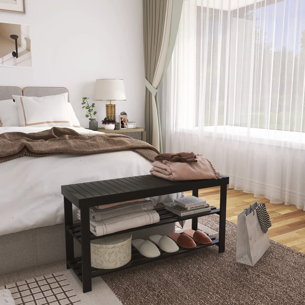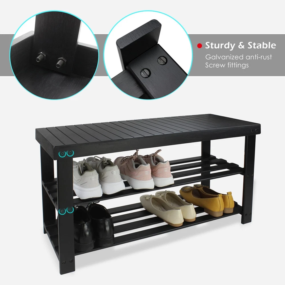 This bamboo shoe rack bench is a game-changer for organizing my entryway! The solid bamboo feels smooth and looks stylish, blending perfectly in any space. I love how versatile it is—not just for shoes but also as a plant stand or side table. Assembly was quick with the included tools, and it feels super sturdy. The eco-friendly lacquer finish is a nice touch. It holds all our daily shoes neatly while adding a clean, modern look. Perfect for small spaces, and the bench feature is so handy for putting on shoes. Highly recommend for anyone needing extra storage with function!