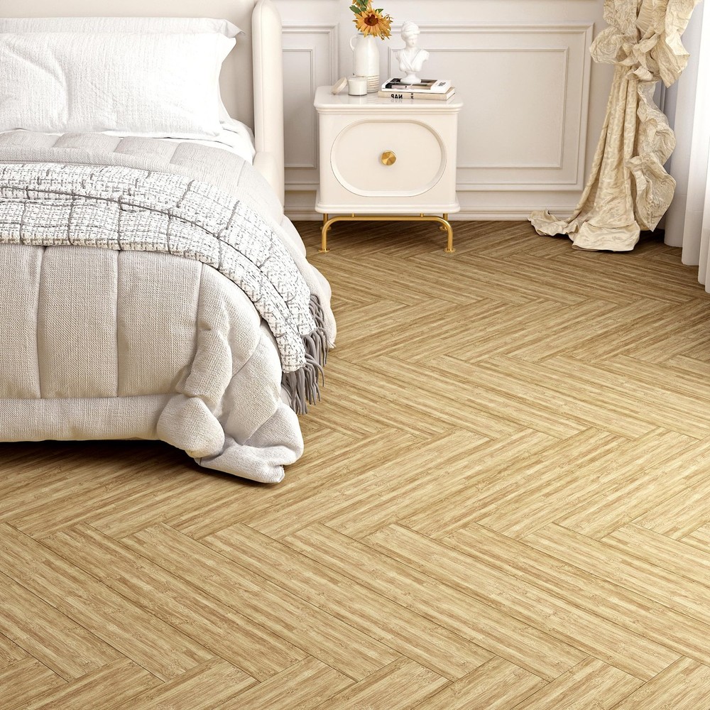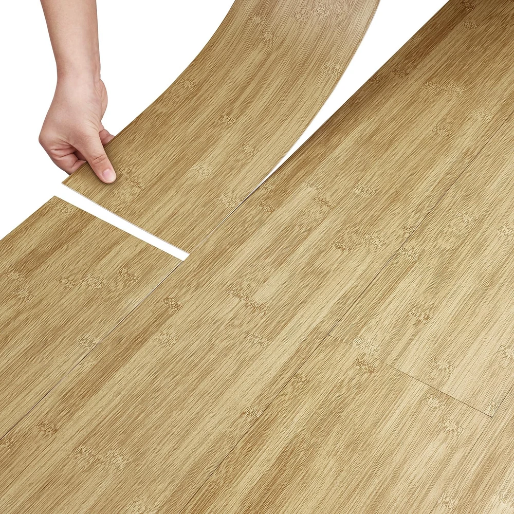 Bamboo Peel and Stick Vinyl Flooring Tile Bamboo grain vinyl flooring blends timeless elegance with modern practicality. It mimics the rich grain and warm tones of bamboo to add a touch of nature to any space. Its versatile design lends itself to rustic, modern or traditional decor. Transform your space with vinyl floor tile, the ultimate blend of style, durability and affordability. Whether you're renovating your home or upgrading your commercial space, the possibilities are endless with vinyl sheet flooring. Vinyl plank flooring is durable and can withstand the harsh elements of everyday life, resisting scratches, dents, stains. It is ideal for high-traffic areas such as hallways, kitchens and bathrooms, as well as homes with pets and children. Its wear-resistant layer provides an additional protective barrier that can be easily cleaned and maintained with only regular sweeping and occasional mopping. Vinyl floor tiles can be applied to flat, clean and dry floors. Vinyl flooring can be installed over most existing subfloors, including concrete, wood,linoleum and laminate, saving the time and money required for preparation. Vinyl floor tile is easy to install, just peel and stick. It is self-adhesive and requires no glue or complicated tools.In just a few hours, you can have a brand new floor to brighten up your home. Thickened vinyl flooring has been upgraded to a thickness of 0.06 inches. It resists curling and warping, and after gluing it has minimal gaps.It is durable, removable, easy to clean, non - fading, non-slip, waterproof and renter friendly!Vinyl floor tiles are waterproof.It's perfect for cluttered bathrooms or kitchens. If you want to increase its waterproofing, you can apply a silicone sealant to the floor tile joints. TIP : To avoid color variations, order all required vinyl flooring at the same time to ensure they are from the same production batch. 【Size】: Each bamboo vinyl flooring tile is 36"×6", 1.5 mm thick. Set of 18 pcs covering 27 sq. ft 【Realistic Bamboo Vinyl Flooring】: This flooring is a blend of rustic charm and modern simplicity. This natural bamboo flooring looks like real bamboo flooring. It gives a warm, natural feel and can be adapted to different decorative styles 【Easy to Apply】: Our self adhesive vinyl plank flooring are easy to install. No messy glues or complicated tools required. Just peel off the backing and stick them down. It make a low-cost, simple, and quick change to your floors to give your home a new look 【Premium Vinyl Flooring】: Made of high quality vinyl material, which is waterproof, non-slip, durable, thick, easy to clean, wear-resistant, non-warping and non-expanding. It removes without sticky residue and is renter friendly 【Versatile Vinyl Floor Tiles】: It is suitable for concrete, ceramic, wood and other floors, stairs, laminates, linoleum,shelves, ceilings, countertops, desks, and can be used to decorate kitchen, living room, dining room, bedroom, bathroom, RV, cubicle