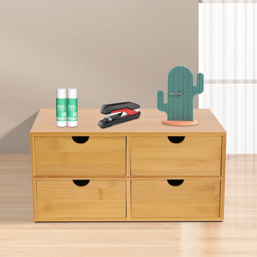Application It Can Be Used to Store Various Daily Necessities, Such As Stamps, Notes, Paper Clips, Scissors, Bills, Pens, Pencils, Business Cards, and Notepads. It Is Also Applicable to Cosmetics Collections, Toiletries, Jewelry, Hair Accessories, Handicrafts, Kitchen Pantry Supplies, Letter Sorting Machines, Etc. Specification Material: Nan Bamboo Color: Wood Finish: Varnish Mounting Type: Tabletop Style: Minimalistic Number of Drawers: 4 Shape: Rectangular Packing Size: 34*20*18cm/13.38*7.87*7.08in Product Size: 33*19*16cm/12.99*7.48*6.3in Gross Weight: 2.1kg/4.62lbs Net Weight: 2kg/4.4lbs Package Included 1* Desktop Organizer with 4 Drawers WELCOME Description Has Your Desktop Been Cluttered with All Kinds of Office Supplies or Cosmetics? Do You Want Them to Be Neatly and Orderly Arranged? Then You Can't Miss This Large Capacity Desktop Organizer. It Keeps Your Space Tidy While Bringing You and Your Family a Healthy and Comfortable Home and Office Environment. This Sophisticated Office Organizer Will Be Your Ideal Choice! Key Features Beautiful Look: the Classic Natural Color and Original Bamboo Texture Look High-class and Sophisticated, Making It an Elegant Addition to Any Space That Will Not Go out of Fashion. High-quality Material: It Is Made from High-quality Nan Bamboo, Which Is Very Strong, Wear-resistant, and Resistant to Breakage, Ensuring a Long Service Life. at the Same Time, Natural Heather Bamboo I s Harmless to the Human Body and Environmentally Friendly. Exquisite Workmanship: the Product Is Meticulously Polished for a Comfortable and Smooth Touch, so You Don't Have to Worry About Scratching Your Hands. the Tight Structure Makes the Product Sturdy and Durable. Wide Application : Not Only Can It Be Used in the Office, but It Is Also Ideal for Daily Storage at Home, Which Can Be Used to Store Stationery, Documents, Cosmetics, Toiletries, Jewelry, Hair Accessories, Sewing Supplies, and More. Sticky Notes Can Also Be Attached to the Side to Remind You of Things You Need to Do and Deadlines. Large Storage Space: Four Large Drawers Provide Ample Storage Space for the Knick-knacks That Always Get Lost to Meet Your Daily Needs. the Top Platform Can Also Be Used to Place Your Computer, Telephone, Stapler, and Alarm Clock. Easy to Clean : This Desktop Organizer's Smooth Surface and Simple Structure Make It Easy to Clean. You Need to Wipe the Surface Gently with a Damp Cloth. Ready to Use: It Has a One-piece Design Without the Need for Installation. You Can Use It Directly After You Receive It, Which Is Very Convenient. Keep Desk Tidy : It Takes up a Small Desktop Area (12.99*7.48in), Which Makes Good Use of the Vertical Space to Organize Your Messy Items on Your Desktop and Keep Your Desktop Neat and Orderly. Ideal Gift: This Beautiful Office Organizer Is the Ideal Gift for Your Family and Friends on Their Birthdays, Weddings, Thanksgiving Day, Christmases, Etc. It Will Be the Most Practical and Memorable Gift They Have Ever Received. Customer Service: We Aim to Provide Quality Products and Services. If You Have Any Problems, Please Feel Free to Contact Us. We Will Reply and Solve the Problem for You As Soon As Possible. Details Varnish Process: the Surface of This Desktop Organizer Is Coated with a Layer of Varnish, Which Can Effectively Protect the Internal Storage Items from Water and Moisture, Giving You a More Secure Storage Space. Curved Groove Handle: Each Drawer Has a Simple Curved Groove Handle That Allows the Drawer to Be Opened and Closed Easily with One Finger. Application It Can Be Used to Store Various Daily Necessities, Such As Stamps, Notes, Paper Clips, Scissors, Bills, Pens, Pencils, Business Cards, and Notepads. It Is Also Applicable to Cosmetics Collections, Toiletries, Jewelry, Hair Accessories, Handicrafts, Kitchen Pantry Supplies, Letter Sorting Machines, Etc. Specification Material: Nan Bamboo Color: Wood Finish: Varnish Mounting Type: Tabletop Style: Minimalistic Number of Drawers: 4 Shape: Rectangular Packing Size: 34*20*18cm/13.38*7.87*7.08in Product Size: 33*19*16cm/12.99*7.48*6.3in Gross Weight: 2.1kg/4.62lbs Net Weight: 2kg/4.4lbs Package Included 1* Desktop Organizer with 4 Drawers Notes Please Allow the Slight Color Difference Caused by the Shooting Light and 1-3cm Error Due to Manual Measurement, and Make Sure You Do Not Mind Before You Order. Payment Delivery details Terms of sales About us Contact us Payment We accept ebay payment 。 Fees such as import duties, taxes are not included in the item price or shipping costs. These charges are the buyer's responsibility. Delivery details Shipping: 2-9 working days to: USA Terms of sales We maintain high standards of excellence and strive for hundred percent customer satisfaction. Feedback is very important to us. We hope that you contact us immediately before you give neutral or negative feedback, so that we can address your concerns. It is impossible to address issues if we do not know about them! About us Your satis faction is our ultimate goal. We work hard to earn your trust and future business. Our certified technicians have tested each item before shipping. The unit comes with 1 year limited warranty on all manufacturing defects. a) If you receive a defective item, you may return it or ask for a discount. Please contact us within 14 days after you receive the package. b) What you returned must be intact and in its original packaging as re? u. Customer is responsible for shipping costs of the returned item. c) We will cover the cost of shipping back t with the shipping rate indicated in the registration page. We will send you a new unit or refund the full payment you paid. Thank you. Contact us Business Hour Business Hour: Monday To Friday: 8:30 AM to 5:00 PM (Beijing China time) Due to time zones, our reply to your questions may not be immediately. But within above working time, we will reply your email within 24 hours. If it's non-workdays, please kindly be patient and wait till Monday. Please 