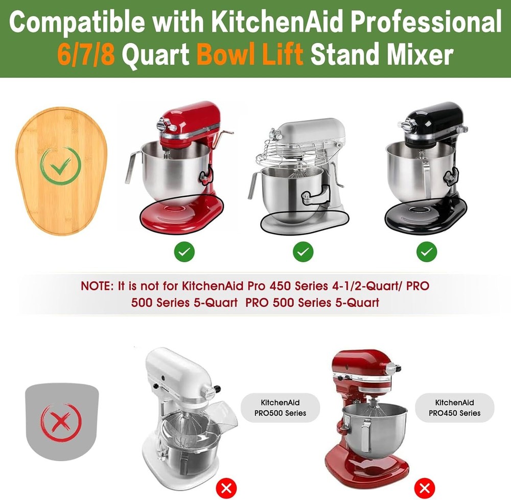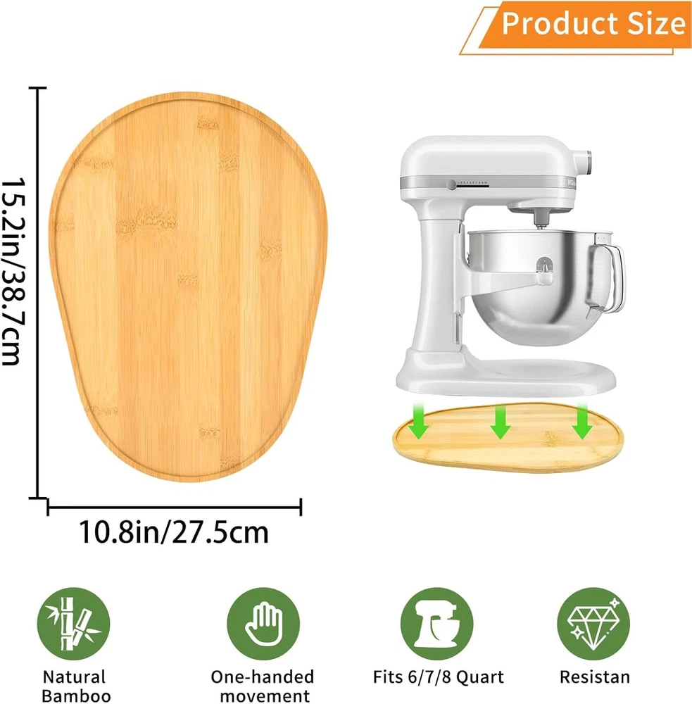 Bamboo Mixer Slider Compatible with KitchenAid 6/7/8 Quart Bowl-Lift Stand Mixer Natural Bamboo - Our sliding mats are made of natural bamboo, a natural material that brings a touch of fresh green to your kitchen and makes cooking more natural and enjoyable. Easy to Move - Place the sliding mat underneath the stand mixer to easily move the mixer to any position. Whether you're moving between different areas of the kitchen, it's easy to do so, saving you time and energy. Protect Your Tabletop - Bamboo sliding mat with distributor slider at the bottom can perfectly protect your tabletop from wear and tear and scratches, whether it is marble, wood or glass tabletop. For 6/7/8 Quart - This sliding mat fits all Kitchen aid stand mixers and is perfectly suited for the 6/7/8 Quart, giving you more flexibility in the kitchen. Perfect Gift Idea - Each bamboo sliding mat has a unique texture and color that makes it one of a kind. As a gift for your wife or friend, it not only shows your care and concern, but also makes them feel special and cherished. Product Description PQPO Mixer Bamboo Sliding Mat Previous page Next page Bottom Appliance Sliders Material Natural Bamboo Notch Fixing Design Make Life Easy in the Kitchen Good Gift Idea