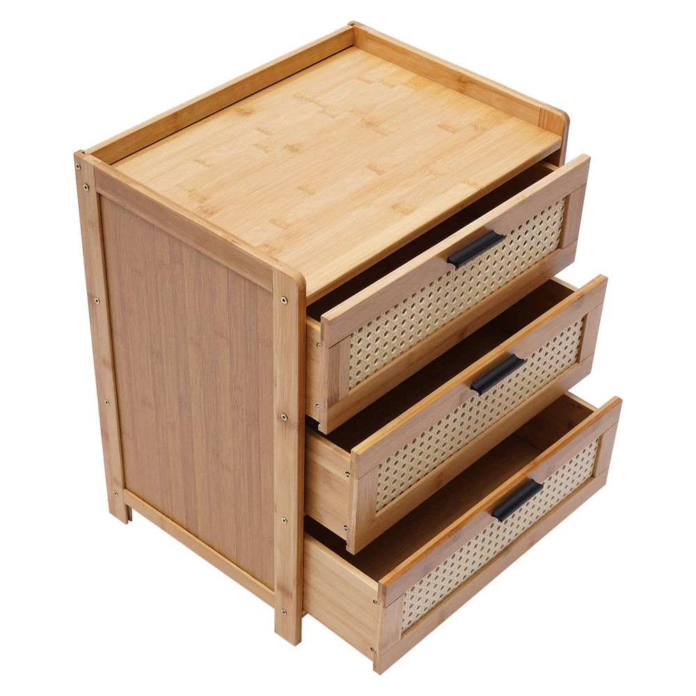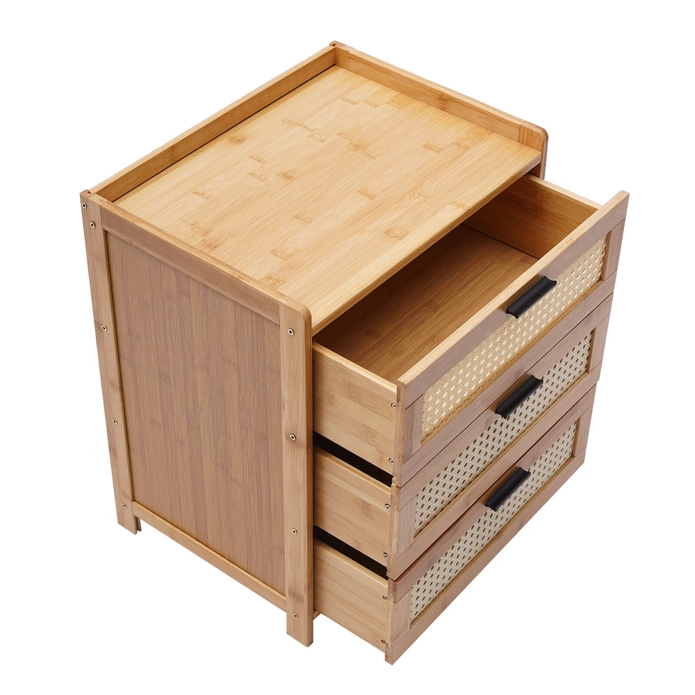 This bamboo nightstand is a perfect blend of style and function! The smooth sliding drawers make storage effortless, while the sleek, minimalist design adds a touch of elegance to any room. Sturdy, eco-friendly, and beautifully crafted, it’s both practical and stylish—great for keeping essentials organized. Love the retro vibe and how it elevates my bedroom decor! Highly recommend.