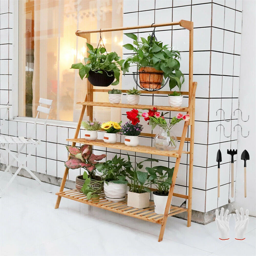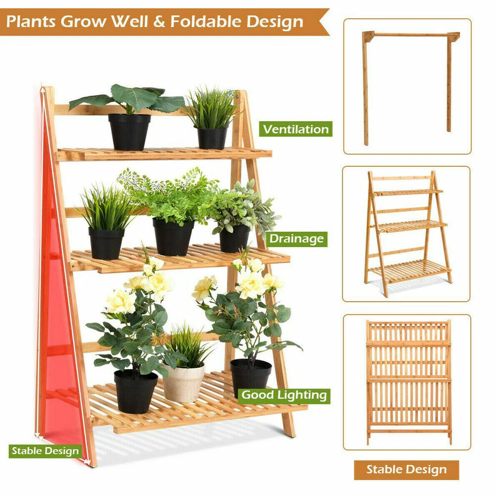 Bamboo Shelf Folding 3 Tier Ladder Book Plant Stand With Hanging Bar Multi Use Bamboo Shelf Folding 3 Tier Ladder Book Plant Stand With Hanging Bar Multi Use US Seller, 3-5 days Arrival! Bamboo Shelf Folding 3 Tier Ladder Book Plant Stand With Hanging Bar Multi Use Feature: Folding Design, Contructed of natural bamboo, garden stand is moth-resistant,durable. 3-tier design and like a ladder, provides enough space to display your any potted plants, tulips in your patio, garden, balcony, living room, flower shop etc. Also organize your books, shoes well. Each tier can bear approx 32lbs, while 3-tiers can bear max weight about 92lbs in total. Strong enough to resist various bad weather. Product Size without Hanging Rack: 70 x 38 x 97cm / 27.56 x 14.96 x 38.19inch ( L x W x H) 100 x 38 x 97cm / 39.37 x 14.96 x 38.19inch ( L x W x H) Weight Capacity: 42kg / 92lbs Package Size: 104 x 38 x 3.3cm / 40.94 x 14.96 x 1.30 inch ( L x W x H) Weight: 4.2kg / 4.8kg Package Included: 1 x 3-Tier Bamboo Plant Stand 1 x Allen Wrench 1 x A Set of Screws 1 x 3PCS Garden Tools 1 Pair gloves 1 x Installation Instruction Product Size with Hanging Rack: 70 x 40 x 96cm/ 27.5 x 15.5 x 37.8in (L x W x H) 100 x 40 x 96cm/ 39.3 x 15.5 x 37.8in (L x W x H) The Highest Hanging Distance From The Third(Top) Layer: 19inches (Adjustable Height) The Middle Layer Height: 11 inches The Bottom Layer Height: 15.4 inches Weight: 4.6kg/10.14lb (70 cm), 5.4kg/11.9lb(100 cm) Package Size: 104 x 38 x 3.5cm/40.94 x 14.96 x 1.38in (L x W x H) Package Included: 1 x 3-Tier Bamboo Hanging Plant Stand 4 x Hanging Hooks 1 x Allen Wrench 1 x A Set of Screws 3 x Garden Tools 1 pair Gloves 1 x Installation Instruction Payment Terms of Sales Shipping Details Contact us About us Payment 1.We accept payment by credit card, paypal, Payoneer. 2.Upon on payment, please confirm your shipping address. Terms of Sales 1. We ship out all of our products brand new. 2. All products have passed quality inspection before shipment. Shipping Details 1.We are located in NJ, CA ,all the items will be shipped via USPS, UPS Ground, Fedex Ground with tracking number provided. 2. We cannot ship to Alaska, Hawaii & Puerto Rico Addresses. Contact us 1. If you are satisfied with the transaction pls remember to leave us a positive feedback 5-star will be much appreciated. 2. Normally your email would get replied within 24 hours (Business Hours) and your issue will be followed up carefully till we 've reached an agreement. 3. Please contact us first if you have any question or suggestion before opening a case or dispute, leaving any neutral or negative feedback. About us We are professional supplier of Home, garden and household products, such as plant stand, bahroom mirrors, TV Mount, Pet Bed, Pet Supplies, Coat racks, Home Furniture etc. Hope you can buy your favorite products in our store. We are manufacturer of bathroom mirrors for decades, our mirrors well received from over 130 countries. The first class factory and skilled technique, pls feel free to contact us if you want drop ship or large procurement. Brand UNHO Vintage (Y/N) Yes Color Wooden Type Shelving Material Bamboo MPN DRL3683WA Style Modern Custom Bundle No Bundle Description Yes Indoor/Outdoor Indoor & Outdoor Pattern Heavy Pattern