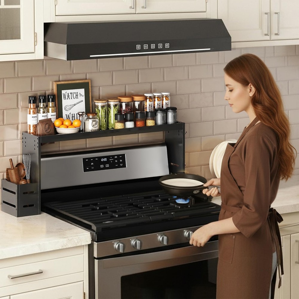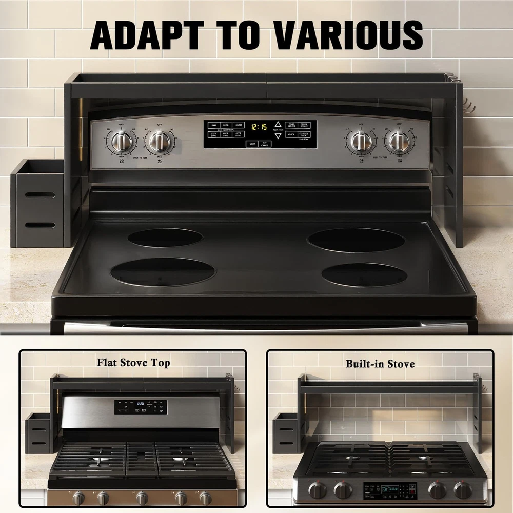 Bamboo Stove Shelf with EVA Kitchen Liner,31in Over The Stove Shelf,Cutlery Holder & 6 Hooks,For Back Of Stove Kitchen Storage stove shelf for back of stove over the stove shelf stove shelf stove top shelf over stove shelf over the stove spice rack oven shelf for top of stove above stove shelf over stove shelf for back of stove over the oven shelf oven shelf stove spice rack shelf magnetic stove top shelf spice shelf stove shelf for back of stove over the stove shelf Best Kitchen Stove Shelf Solutions: Our 31-inch Bamboo Stove sits securely over your stove,instantly adding premium storage space for spices, oils, and kitchen essentials – without stealing counter space! Features a built-in cutlery holder and 6 sturdy hooks for utensils, keeping everything within reach while cooking Secure And Stable Fit Design:This over the stove shelf features premium EVA kitchen anti-slip mats, providing exceptional grip and heat/oil resistance for your countertop surface. The non-slip pads on the bottom enhance stability, ensuring the rack and its contents stay firmly in place. Safety First! Durable Stylish & Easy Clean: Stove shelf crafted from premium moisture-resistant bamboo,this stove shelf for the back of the stove adds modern style to your kitchen. Its smooth bamboo surface paired with EVA Kitchen Liner—just wipe with a damp cloth or mild detergent. Maintenance is a breeze! Easy Installation: Designed specifically for standard stove shelves,Assembly steps come with installation instructions to help you complete setup quickly. Trim the EVA Kitchen Mat to your ideal size to protect countertops, install hooks and the Cutlery Holder on the stove shelf, and start organizing! Ready to use in minutes. Premium Value & Satisfaction: More than just a shelf! Get the complete organization solution with included bamboo shelf, protective EVA liner, dedicated cutlery holder, and 6 hooks. Backed by our worry-free guarantee – if you're not completely satisfied, contact us for a solution