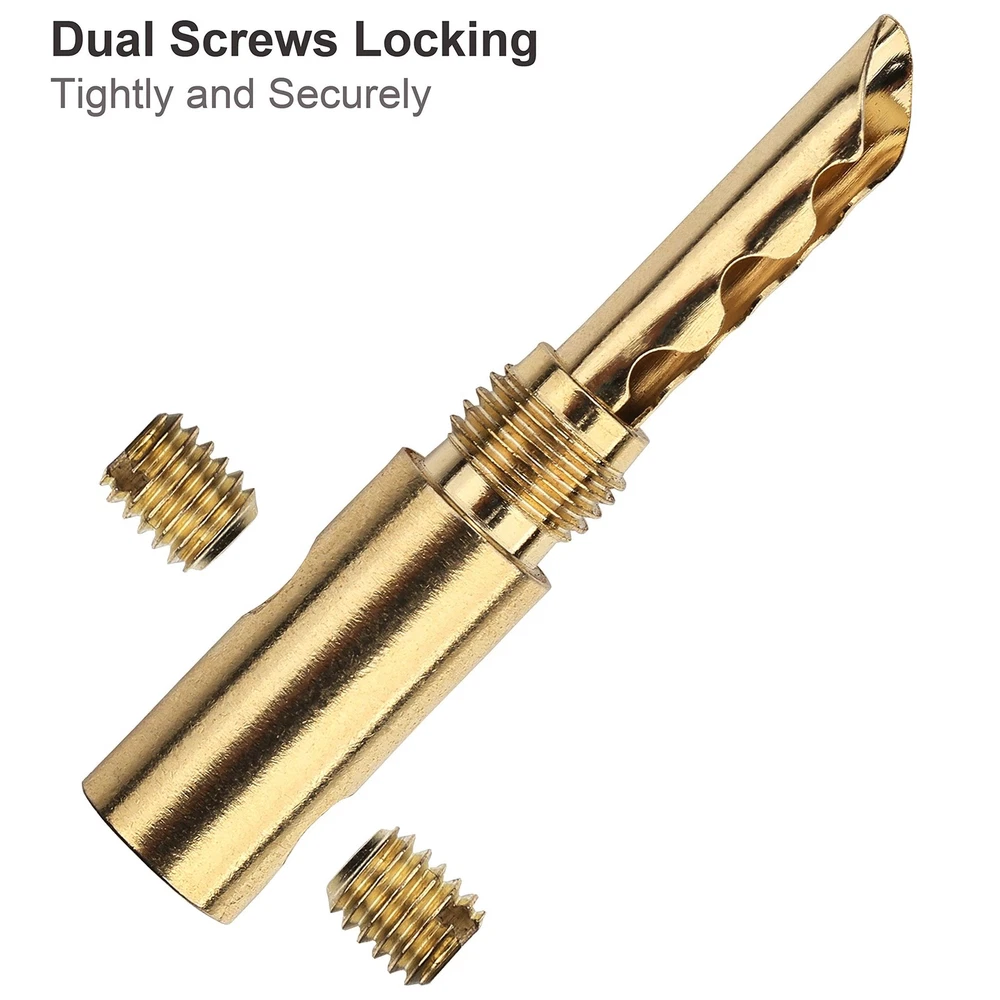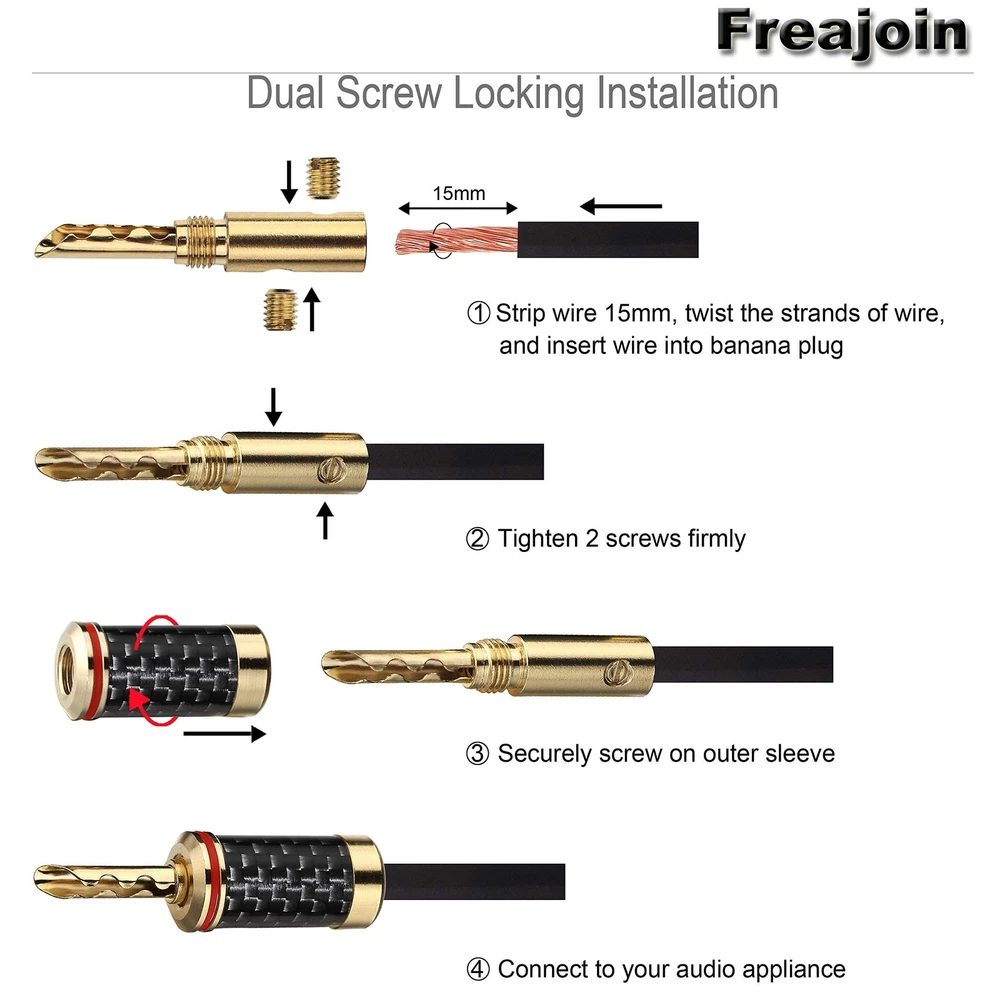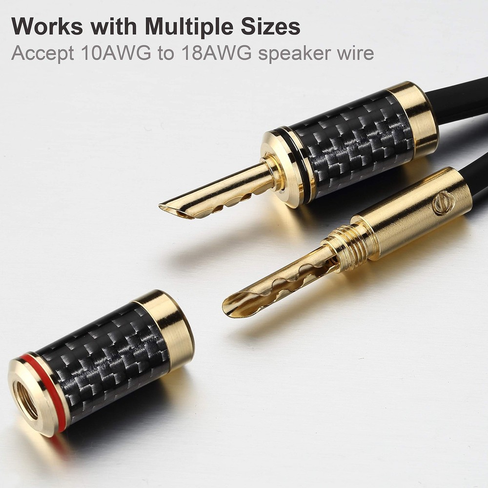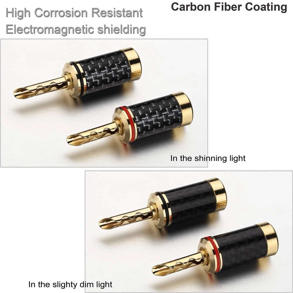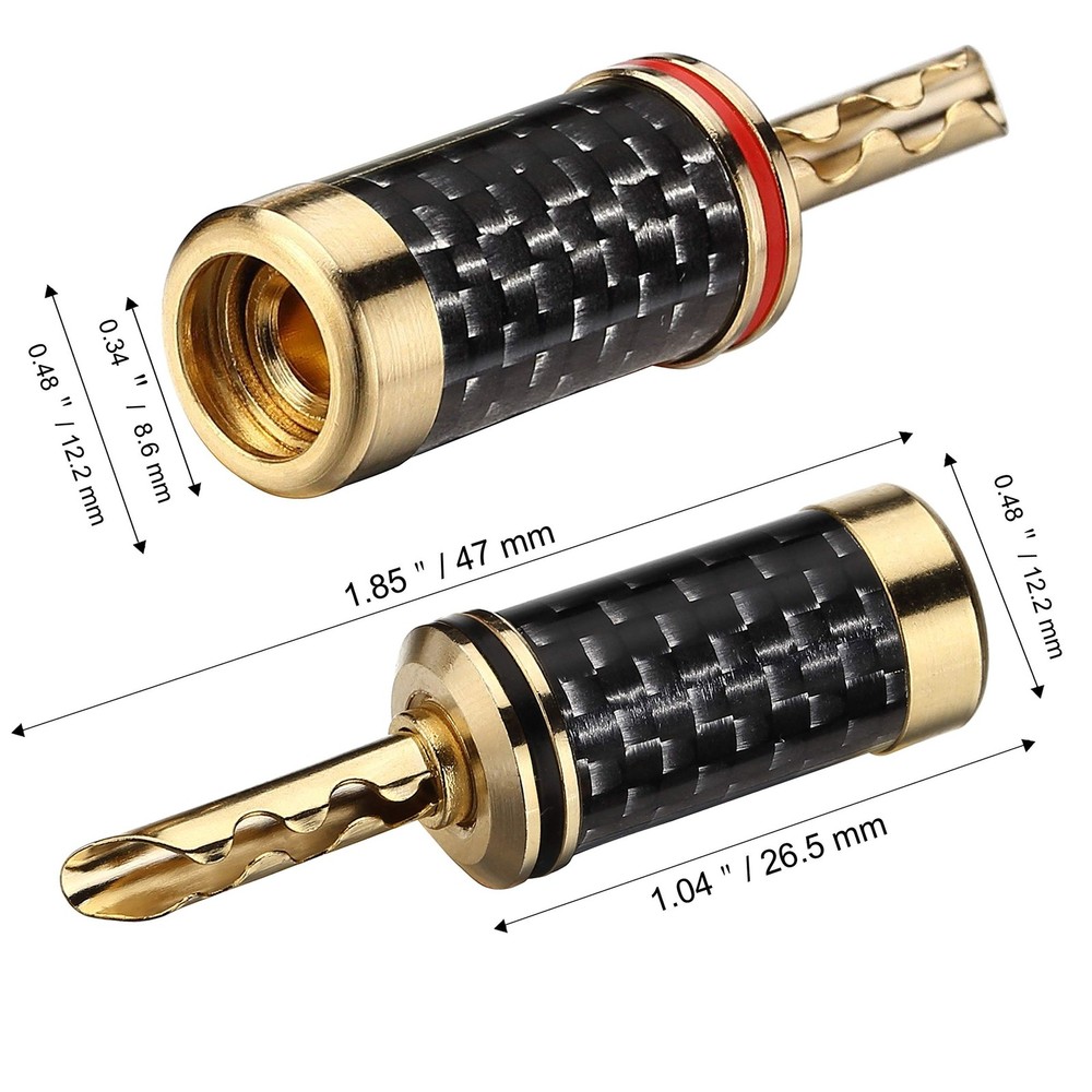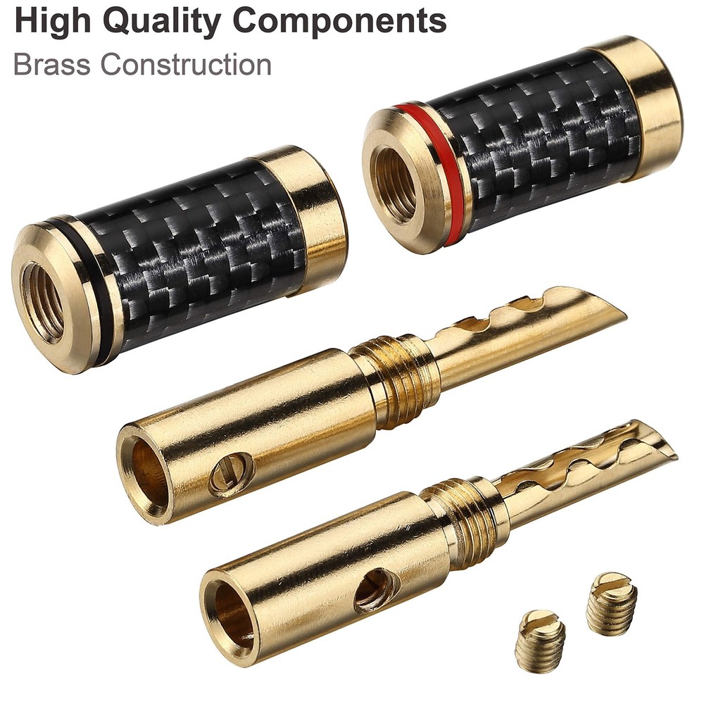 Banana Plugs 5pairs (10pcs) 24k Gold Plated BFA Speaker Plug connectors for HiFi Speaker Wire Product Details Size: BFA Color: 5 Pairs Brand: Freajoin MPN: FBN25805 UPC: Does not apply EAN: Does not apply Brand: Freajoin Connector Type: Brca Compatible Devices: Speaker Special Feature: Magnetic Color: 5 Pairs Brand: Freajoin Connector Type: Brca Compatible Devices: Speaker Special Feature: Magnetic Color: 5 Pairs Shape: Round Indoor/Outdoor Usage: Indoor, Outdoor Customer Package Type: Standard Packaging Manufacturer: Freajoin Package Dimensions: 6.7 x 4.7 x 0.7 inches Item Weight: 2.39 ounces Item model number: FBN25805 Date First Available: February 5, 2020 5 pairs of banana plugs (10 plugs total) for easily installing speakers Brass Conductor, Gold plated for best signal transfer and Corrosion Resistance Brass Housing with Carbon Fiber Coating, which offers high corrosion resistance and effective electromagnetic shielding Accepts Multiple Sizes of Speaker Wires, Compatible with 10 AWG to 18 AWG speaker wires BFA Type Design with Increased Contact Surface for High Performance, Dual Screw Locking Install type Assure the Wire Connection Secure