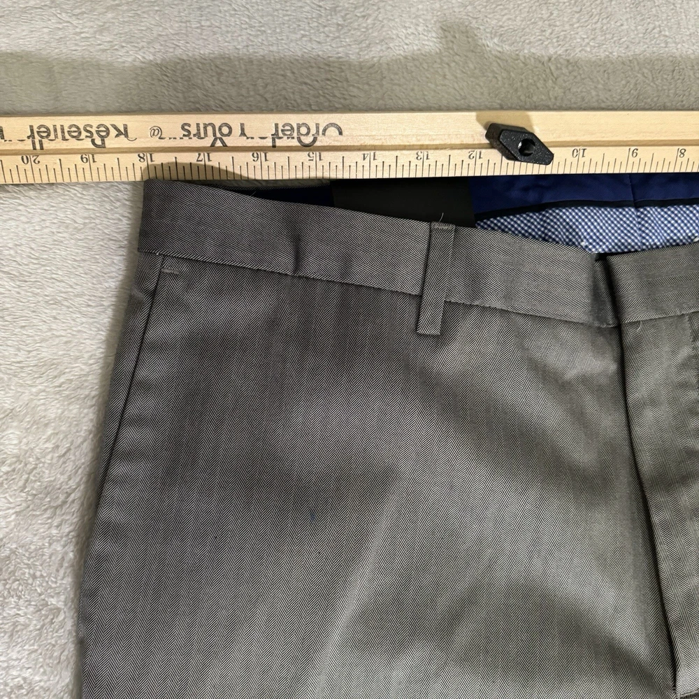Elevate your wardrobe with these stylish and versatile Banana Republic dress pants. Perfect for any occasion, whether it be a business meeting, formal event, or a casual day out. These pants feature a slim fit design with a 36-inch waist size and a straight leg style with a 30-inch inseam. Made from a comfortable and stretchy blend of spandex and cotton, these pants are easy to care for and wrinkle-resistant. They also come equipped with slash pockets for added convenience. The flat front design and solid pattern give these pants a modern and preppy look, while the button and zipper accents add a touch of style. Whether you're heading to the office or a night out, these pants are sure to become a staple in your wardrobe.