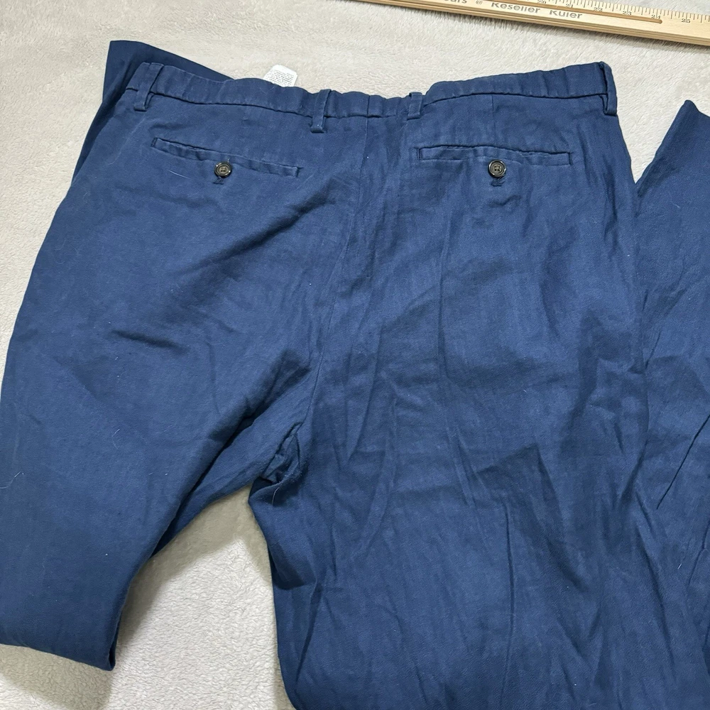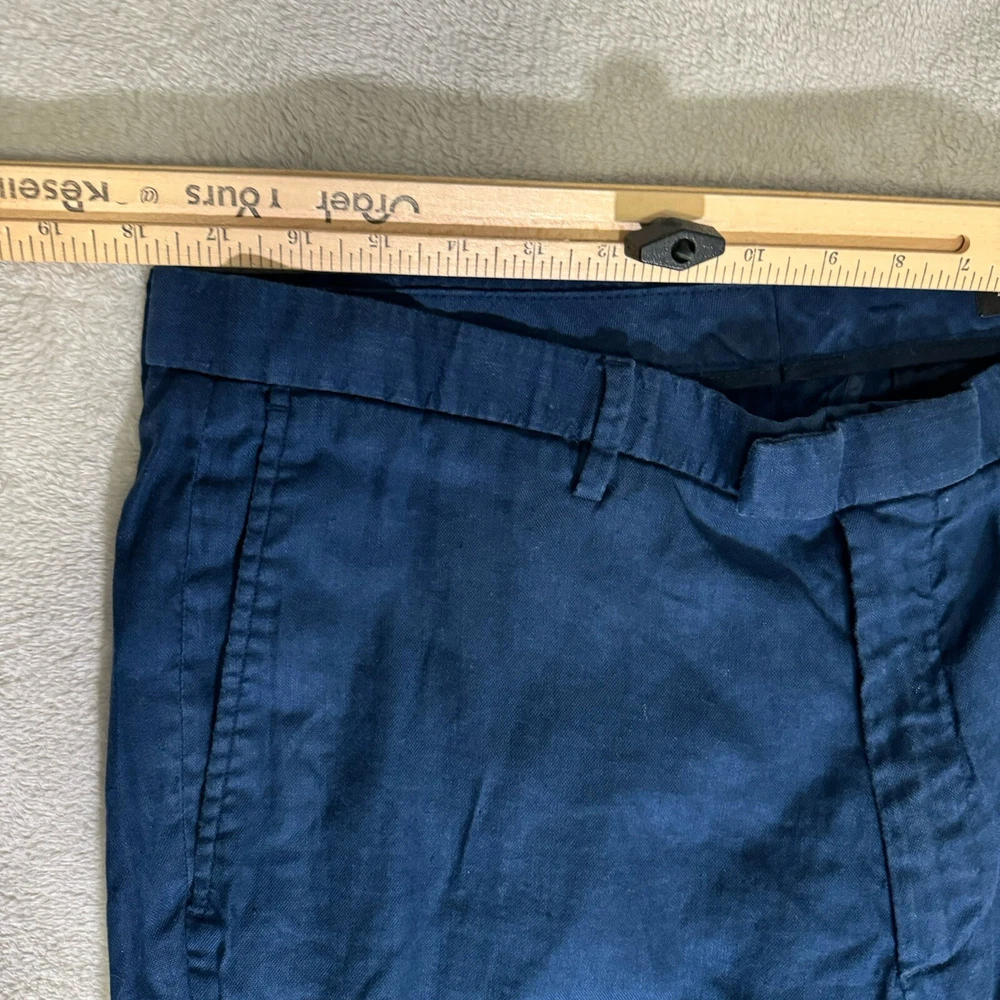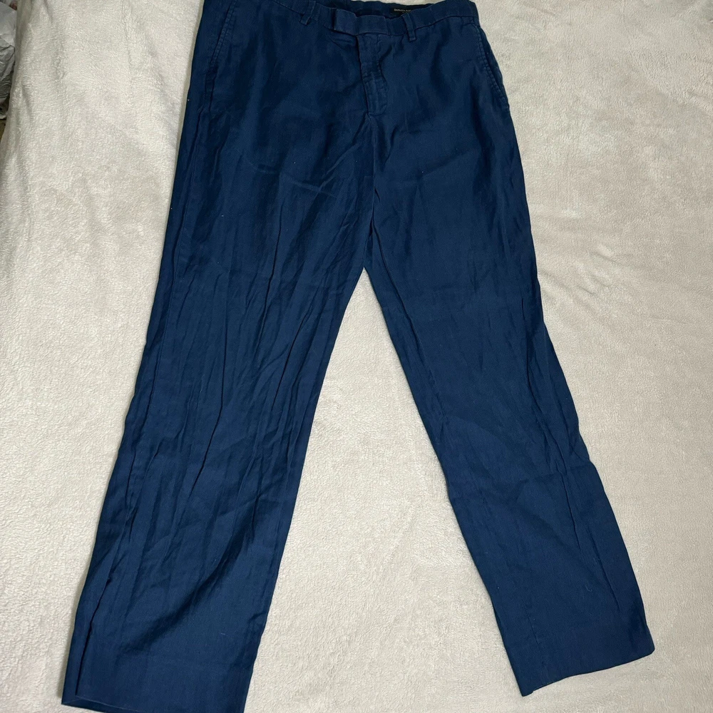 Upgrade your wardrobe with these stylish Banana Republic pants. Perfect for any occasion, they feature a comfortable and breathable polyester blend with a linen material in a solid blue color. The pants have a slim fit design with a flat front and straight leg style, making them ideal for men who want to look preppy and city-savvy. These pants are perfect for travel, weddings, parties, casual outings, formal events, workwear, and business meetings. They have a waist size of 36 inches and an inseam of 32 inches, with a mid-rise of 10-12 inches. The pants also feature slash pockets for added convenience. Get your hands on these versatile and fashionable pants from Banana Republic today!