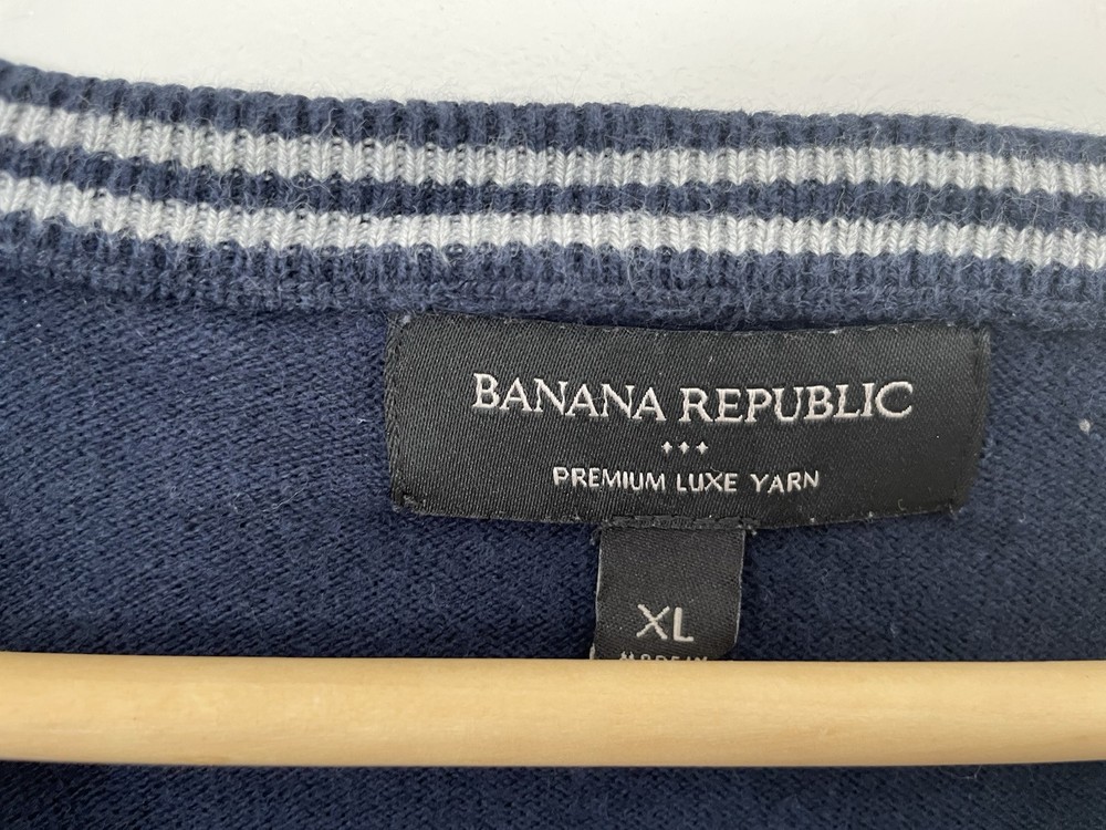 Banana Republic Premium Luxe Yarn Men's Colorblock Cotton Blend Sweater Multi XL. Condition is pre-owned. Smoke free, pet free home. Shipped via USPS Ground Advantage. In very good condition. Free of rips or stains.