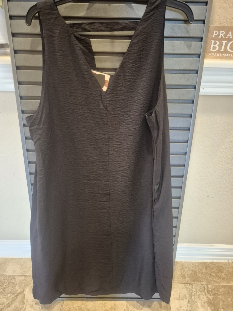 Banana Republic Satin Sleeveless Shift Dress Size XXL Black Pockets WD1