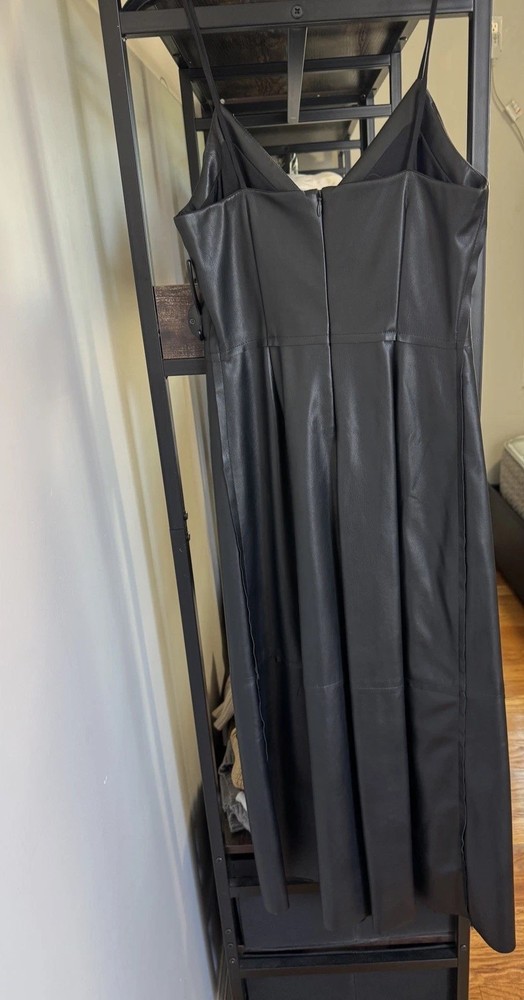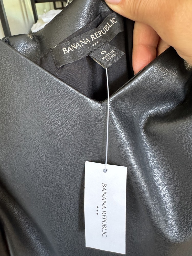 The Banana Republic Vegan Leather MIDI Dress in size 0 is a stylish and elegant choice for women looking for a versatile addition to their wardrobe. This sleeveless dress features a midi length, perfect for a variety of occasions. Made from vegan leather, it offers a chic and cruelty-free option for those who appreciate the quality of leather while also being conscious of animal welfare. The black color adds a classic touch to the dress, making it a timeless and fashionable piece for any woman's collection.