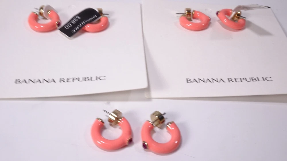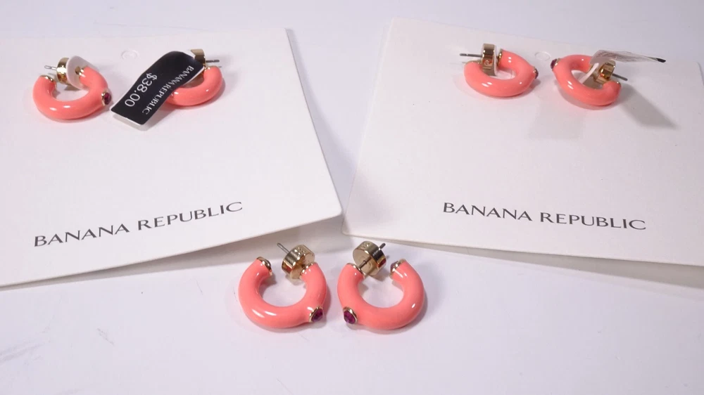 Welcome to NYC Elite Boutique Banana Republic Pink Enamel Crystal Hoop Earrings NWT $38.00 Heres the Scoop..... Dress it up or dress it down, our jewelry collection is filled with pieces that add instant polish. Zinc with gold finish. Enamel and glass accents. . Pink Enamel pink Crystal BR Crystal Push Back Post POLICIES We Strive Based in New York City , one of the most competitive and diverse fashion and retail environments on the planet, we are an off-price retailer offering exceptional value at unbelievable prices. Yet we never compromise on the quality of the products and services we provide to our most important asset, you our Customer. Our Job is not complete unless you are completely WOWED. We strive for a perfect 5 star rating and positive feedback. Should you feel otherwise, please contact us so that we can work with you to meet your best buying experience and resolve any issues that may occur. Please do not leave neutral or negative feedback without contacting us first. Our staff is educated, highly qualified and professional in all aspects of this business, including excellent customer service. Although it doesn’t happen that often, we’ll look forward to challenges that may arise and work them out prior to an end result where nobody wins. We love to hear your thoughts and comments. It's always a pleasure and your feedback goes a long way toward the continued success of our business. Shipping Policies We ship worldwide within 1 to 2 business days after payment is received. COMBINED SHIPPING . We offer a shipping discount for items shipped together. You pay the shipping cost listed in the auction for the highest price item. The discount for each additional item is up to 50% and usually substantially less. Domestic Buyers: All items shipped to a U.S. address include delivery confirmation and are shipped to the confirmed address on Paypal. International Buyers: All items are shipped via USPS and rates may vary by country. Please see the USPS website for details and accurate pricing. USPS International shipment does not guaranteed a specific time frame. The only way for an international package to be tracked and have signature confirmation is Express Mail, which is significantly higher in cost than Priority. Unless that option is chosen, we cannot be held liable for delays encountered by USPS, nor can we be held liable for customs delays. Customs, duties and taxes are the responsibility of the buyer. Please check with your country's customs office for an estimate of these costs. We will not mark the shipment as "gift" nor will we declare a lower amount than the actual sales price. It is required to fill customs forms accurately. We combine all international orders. Whatever we can fit in the box at that price will ship as one price. Returns To reach our goal of always being a top-rated status, we honor returns of any item within two weeks of date of purchase. Customer pays shipping costs unless there is a problem on our end. Insurance is included in ship cost on each item. Auctions We sell both new and pre-owned items. All our goodies are guaranteed authentic. We describe each item as accurately as possible. Any flaws, defects or imperfections will be included in the listing. DUE TO THE SIZE OF NYCELITEBOUTIQUE, WE DO NOT SELL TO CUSTOMERS WITH LESS THAN 150 POSITIVE BACK. IF YOU WOULD LIKE TO BID ON AN ITEM AND FALL UNDER THIS CATEGORY KINDLY CONTACT US FOR REVIEW. WE ARE ALWAYS WILLING TO WORK WITH BUYERS. Thank you for shopping and growing with us, and we look forward to making you a fabulous Fashionista! Froo www.froo.com | Froo Cross Sell, Free Cross Sell, Cross promote, eBay Marketing, eBay listing Apps, eBay Apps, eBay Application