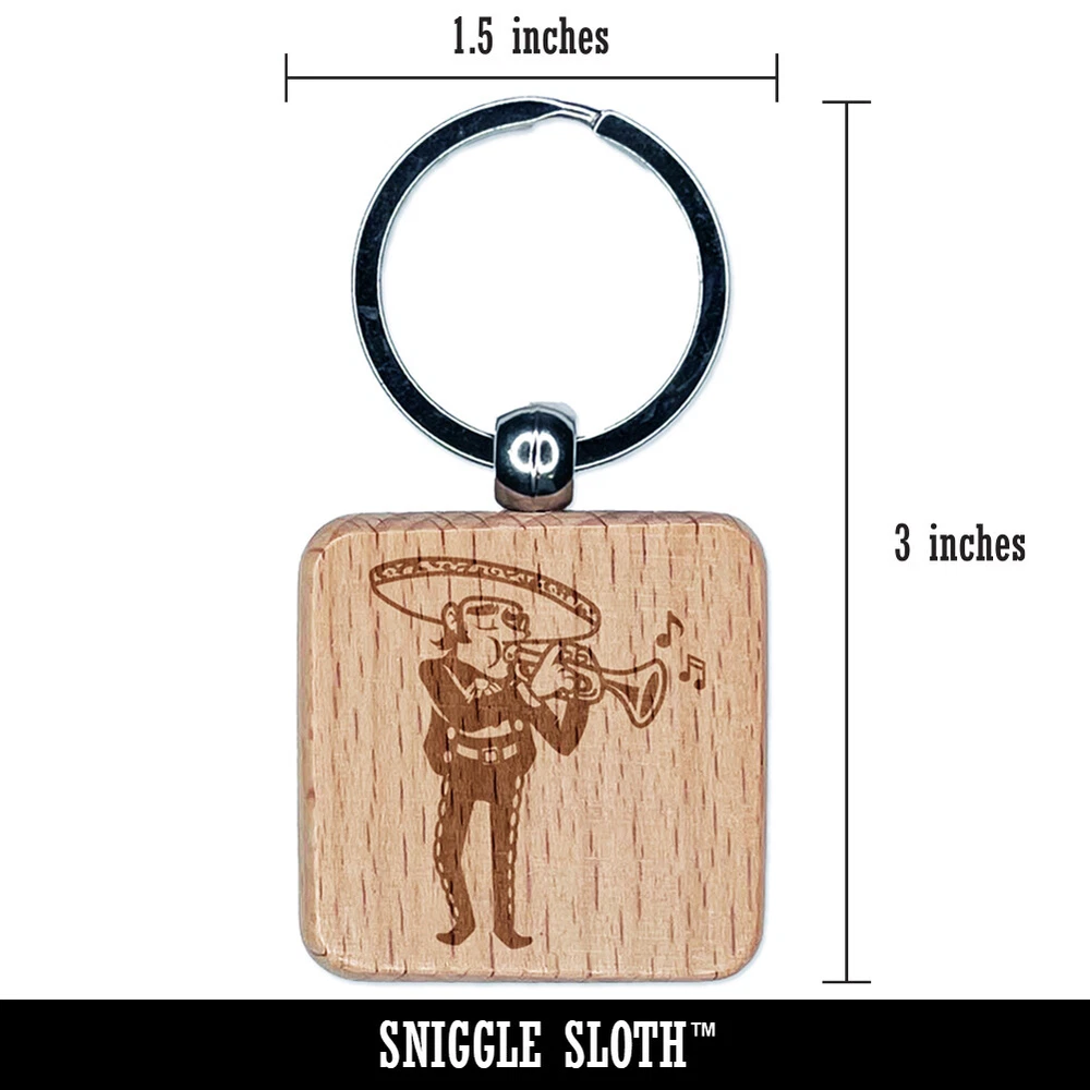 Banda de Mariachi Hombre con Trompeta Española Grabada Madera Cuadrada Llavero Etiqueta Dije