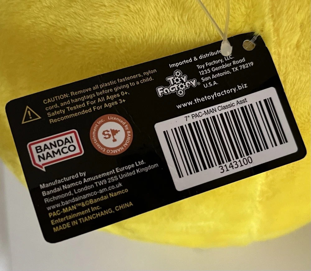 The Bandai Namco Pac-Man 7" Plush Stuffed Toy is a collectible merchandise item featuring the iconic Pac-Man character from the popular arcade game. Produced by Bandai, known for its high-quality products, this plush toy is designed to resemble Pac-Man with its signature yellow color and shape. Perfect for fans of the classic game, this plush toy can be a cool addition to any arcade gaming or Pac-Man memorabilia collection. In excellent condition with tag. From non smoking household.