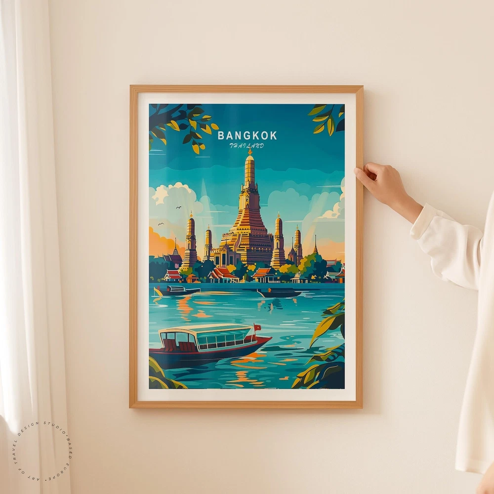 Bangkok Thailand Travel Poster Bangkok Thailand Wall Art Decor Bangkok Thailand Print Birthday Gifts Wedding Present Material: Premium luster photo paper Print type: Inkjet printing One side printed + The finish provides the highest possible resolution and color saturation + Lasts up to 200 years in color and 400 years in black-and-white + Printed on high-quality resin-coated photo base paper medium + Posters can be hung with double-sided tape, tacks, or framed + Hand washing with a gentle cry cloth is recommended for extended durability I will hand select the best choice of paper for your chosen design to ensure top quality results for a beautiful, bright and luxurious print. All prints are sealed in cellophane slips for protection during transportation, and are shipped in a protective cardboard envelope.