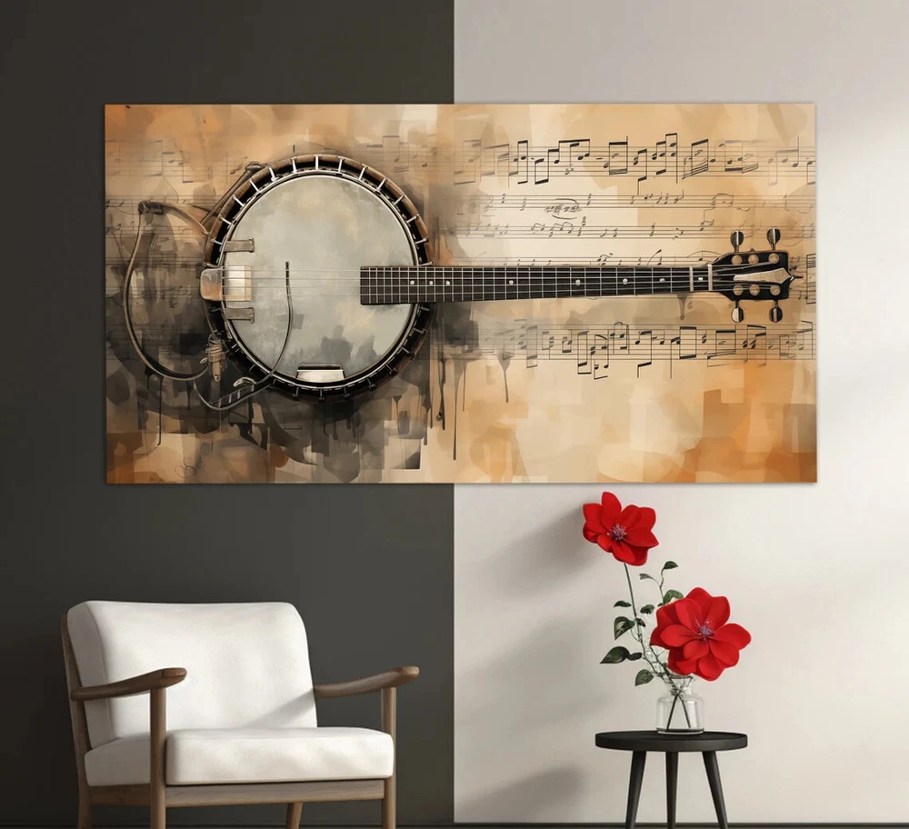 Banjo Vintage Oil Paint Abstract Music Unframed Canvas Print Australian Wall Art