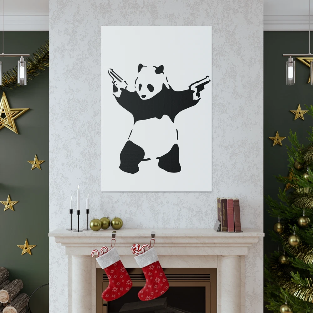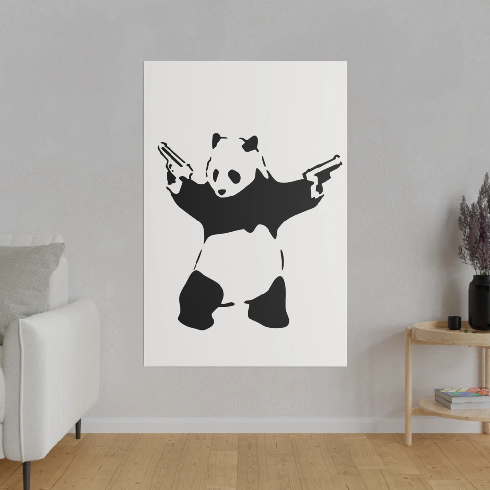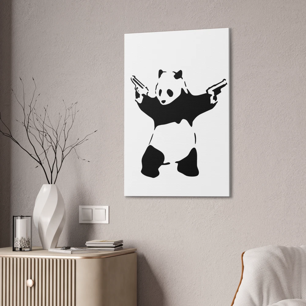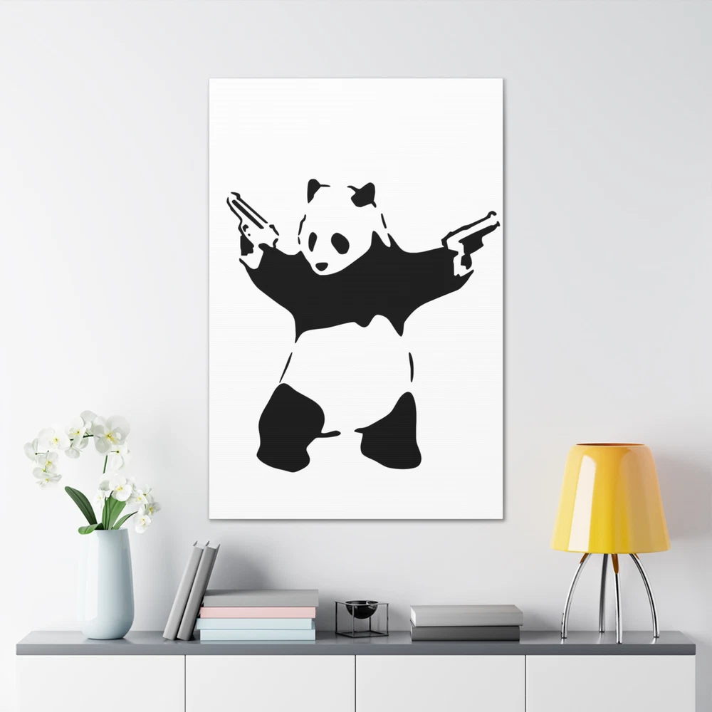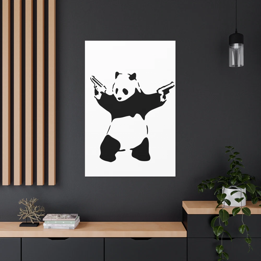 Banksy Panda Gunman Canvas Thug Panda Black White Street Art Wall Decor