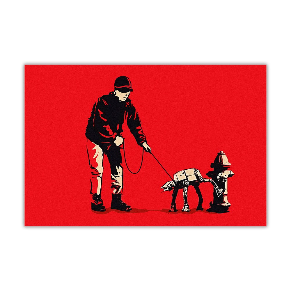 Banksy Star Wars Canvas Artwork for Your Walls - Elevate your home decor with stunning art that's bound to illuminate your space. Experience Our 30-Day Hassle-Free Return and Money-Back Guarantee! We promise complete satisfaction with the high-quality canvas print you receive. Should you change your mind for any reason, we offer straightforward, no-questions-asked returns within 30 days. Professionally Framed and Ready to Display - Crafted to stand the test of time, featuring an 18mm European pine frame and archival-grade canvas. Handcrafted with Care - Each enchanting art print is meticulously handmade in the UK to ensure it endures for generations. Vibrant Colours That Pop - Every piece of wall art is produced using cutting-edge photo-to-canvas printers, resulting in a breathtakingly vivid finish. We are Art Enthusiasts Offering Affordable Excellence - We're passionate about art and committed to delivering high-quality wall art at affordable prices.