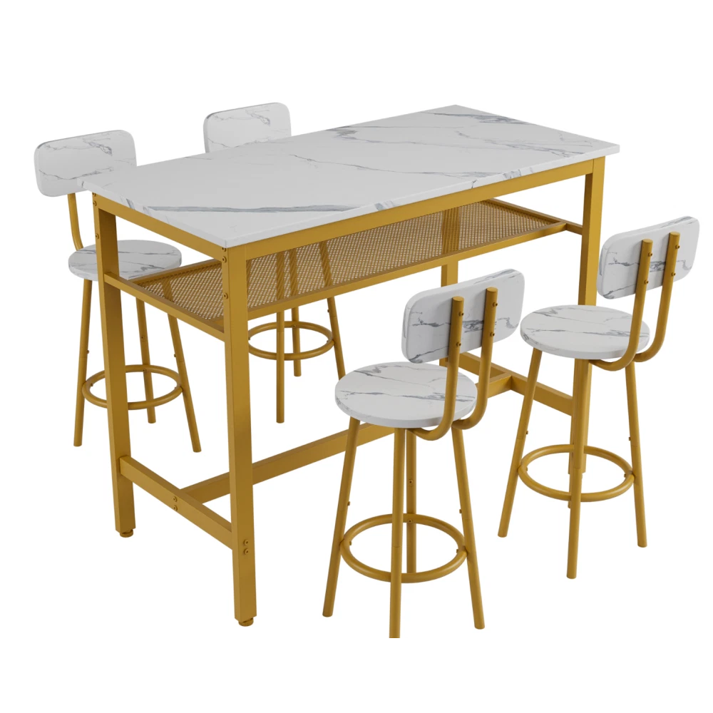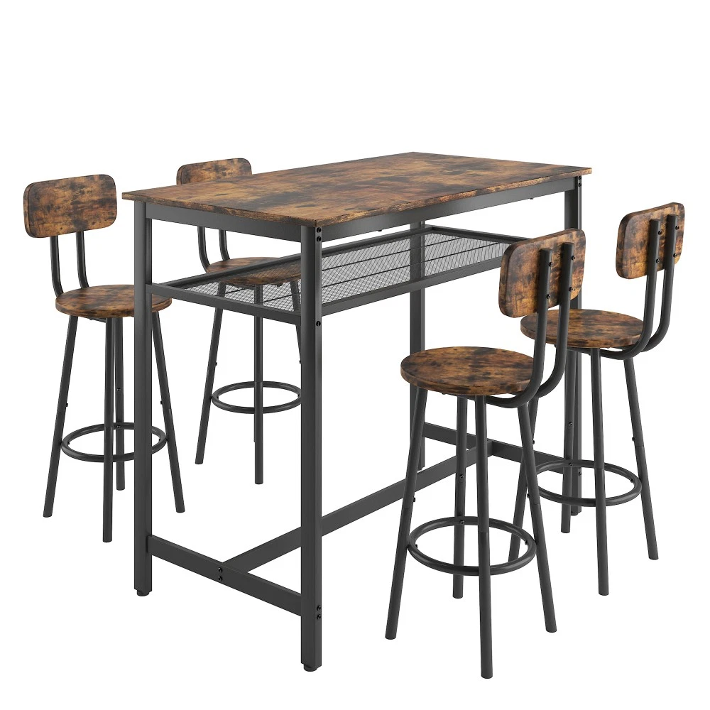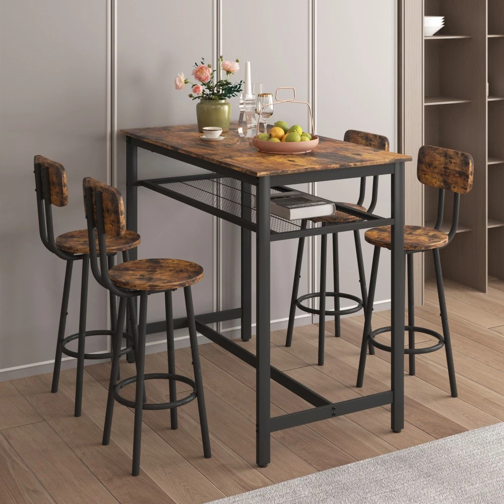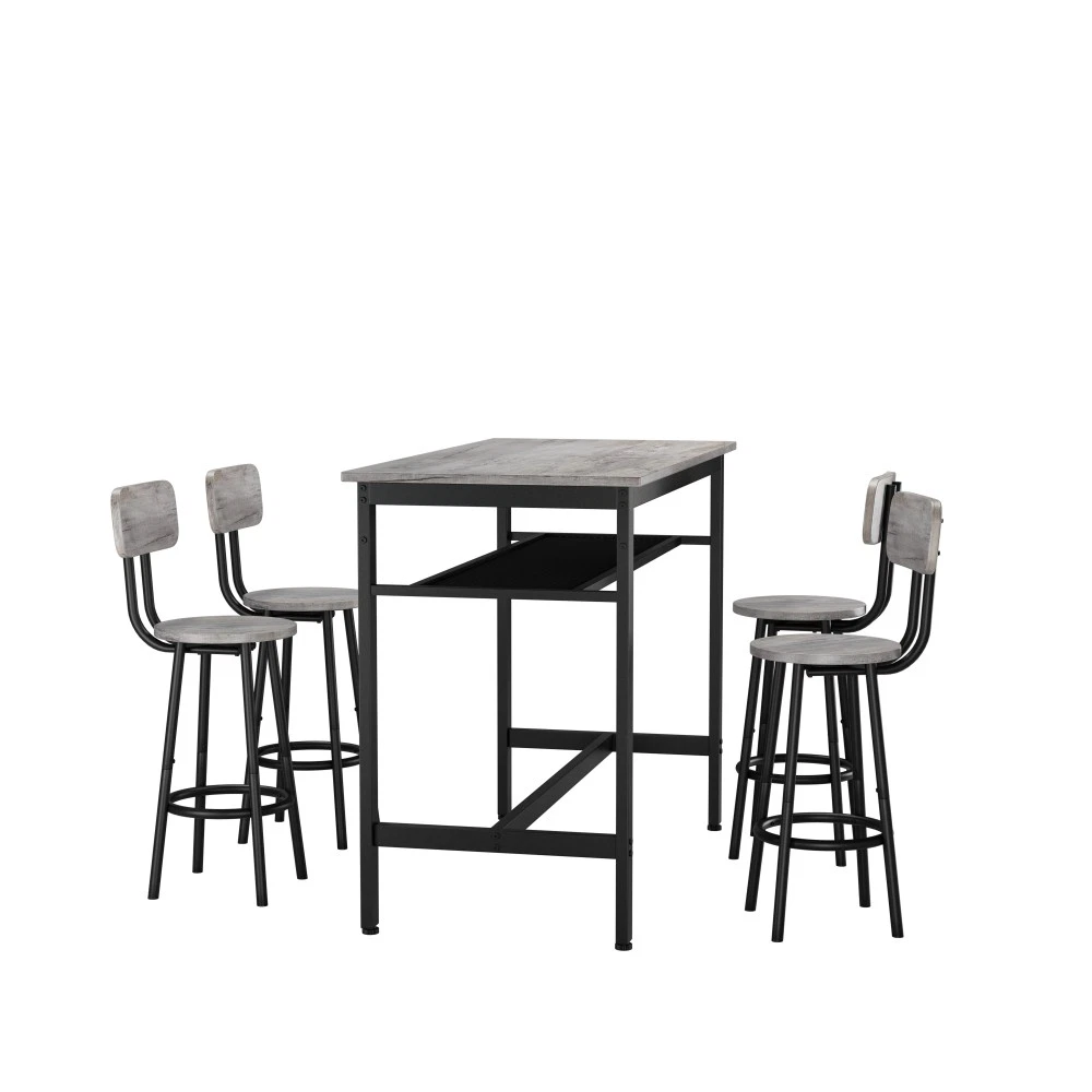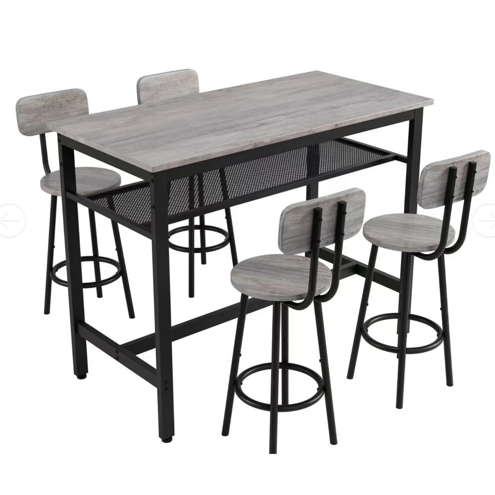 ✅ 1 YEAR WARRANTY & 30-DAY FREE RETURN GUARANTEE - Shop with confidence! We stand behind our product quality with a 1-year manufacturer warranty against defects. If you're not completely satisfied for any reason, enjoy a hassle-free 30-day free return policy. Upgrade your home dining space with our stylish and functional 5-piece counter height dining set! This antique grey set includes 1 compact bar table and 4 comfortable stools, designed to fit seamlessly into small apartments, kitchens, dining rooms, or home bars. Combining modern pub style with durable construction, it's ideal for family dinners, friend gatherings, or casual breakfasts. ✨ KEY FEATURES THAT STAND OUT Super Sturdy & Durable Construction - The tabletop is crafted from high-quality environmental MDF with precision edge technology, offering waterproof and scratch-resistant performance—effortless to clean with a damp cloth or mild detergent. Heavy-duty powder-coated steel legs ensure exceptional stability, while the table supports up to 176lbs and each stool holds an impressive 440lbs (way more than standard sets!). Space-Saving Design for Small Areas - Measuring 43.3"L x 23.7"W x 36.2"H, this compact set maximizes every inch of your space. When not in use, all 4 stools tuck neatly under the table—no more cluttered walkways! Perfect for studio apartments, cozy kitchens, or small dining nooks. Comfortable Seating Experience - Each stool features a wooden backrest for gentle support and a looped footrest that lets you relax comfortably. Under-seat crossbars reinforce stability (no wobbly stools!) and the integrated footrest brace keeps your feet at ease during long meals or conversations. Built-In Storage Solution - A handy mesh shelf under the table provides extra storage for books, chargers, napkin holders, or dining essentials—keeping your space organized and clutter-free. It's the little detail that makes daily use more convenient! Versatile for Any Occasion - More than just a dining set! Use it as a breakfast bar, home office desk, or a casual workspace. It also works great in commercial settings like small bars, bistros, or cafes. Accommodates 4-6 people—perfect for family meals or small get-togethers. Modern Style That Blends In - The sleek antique grey finish and simple pub design complement any home decor—from farmhouse to contemporary. Add a touch of elegance to your space while keeping a relaxed, inviting vibe. 📐 PRODUCT SPECIFICATIONS Item Details Set Includes 1 Table + 4 Stools (5 Pieces Total) Color Antique Grey Material High-Quality MDF Board & Heavy-Duty Steel Frame Table Dimensions 43.3"L x 23.7"W x 36.2"H (Assembled) Stool Dimensions 12.6"L x 12.6"W x 34.6"H Weight Capacity Table: 176lbs; Each Stool: 440lbs Total Weight 67lbs (Table: 32.2lbs; Single Stool: 7.5lbs) Packaging 1 Package (47.24"L x 27.40"W x 5.00"H, 69.5lbs) 🔧 EASY ASSEMBLY & MAINTENANCE No professional tools needed! This set assembles in just 20 minutes —we include clear instructions, all necessary accessories, and tools. The waterproof, scratch-resistant tabletop and smooth stool surfaces are a breeze to clean: simply wipe with a damp cloth or mild detergent to keep them looking like new. 🏡 WHY CHOOSE OUR DINING SET? Whether you're enjoying a quiet breakfast, hosting a game night with friends, or working from home, this 5-piece set adapts to your needs. Its durable construction ensures long-lasting use, while the modern design elevates any space. Plus, our 1-year warranty and 30-day free return policy give you total peace of mind! SHIPS FAST in 1 package—get your new dining set delivered quickly to start enjoying better meals and gatherings!