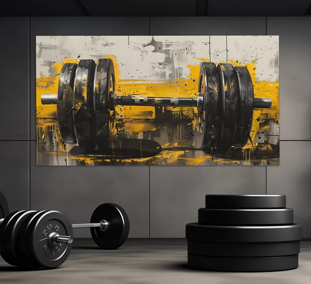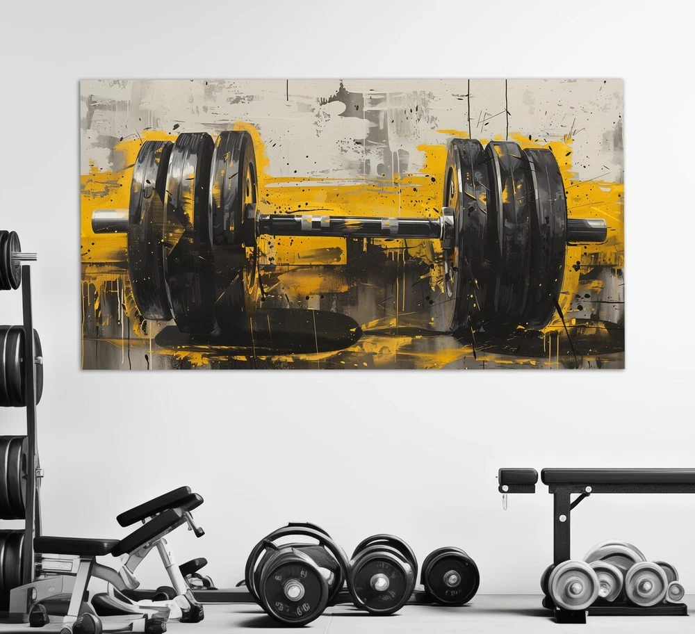 Barbell Gym Black Yellow Fitness Paint Unframed Canvas Print Australian Wall Art