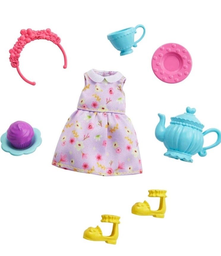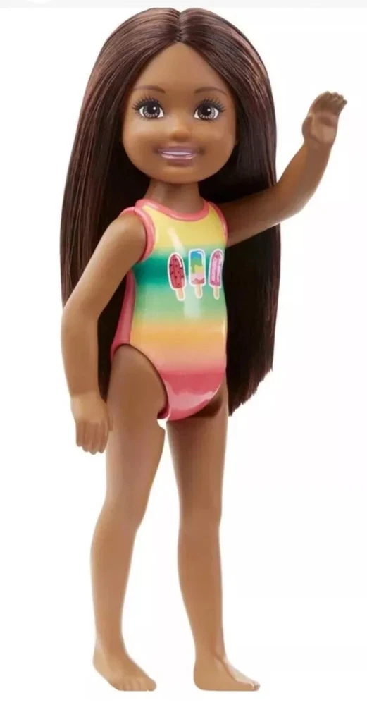 Lot of 2 (1 doll 1 fashion packs) Beach Doll Chelsea in Popsicle swimsuit B rown Hair Brown-eyes . Swim suit is not removable Barbie Chelsea Tea Party Themed Fashion Pack Shipping costs includes supplies plus postage