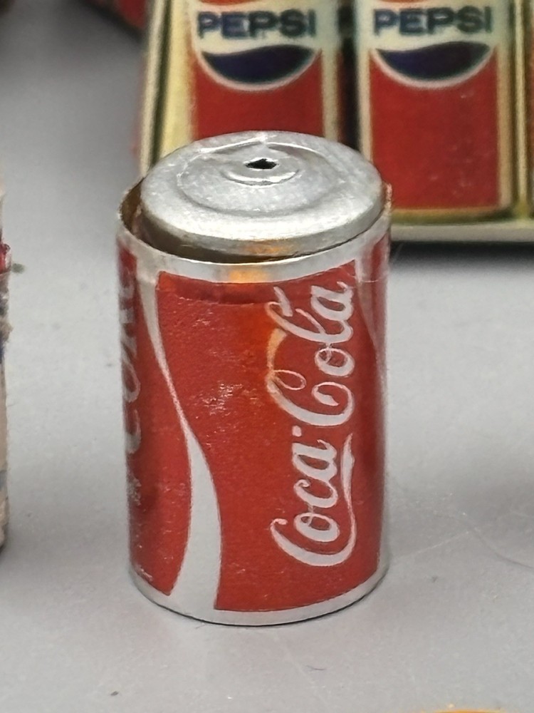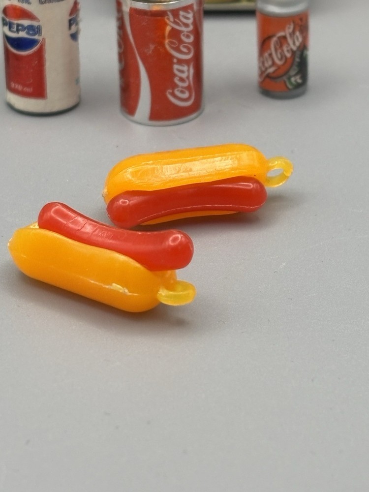 Step back in time with these authentic 1980's Barbie Doll Accessories, a nostalgic addition to any vintage toy collection. This set features classic cardboard soda cans, replicating the iconic Coke and Pepsi bottles, along with a miniature hot dog, capturing the essence of a beloved era. Ideal for collectors and enthusiasts, these accessories are designed for Barbie dolls and up, appealing to those aged 17 years and older. The set's rétro charm is sure to evoke memories of childhood play and the simple joys of the 80's. Add a touch of vintage flair to your display with these charming pieces.
