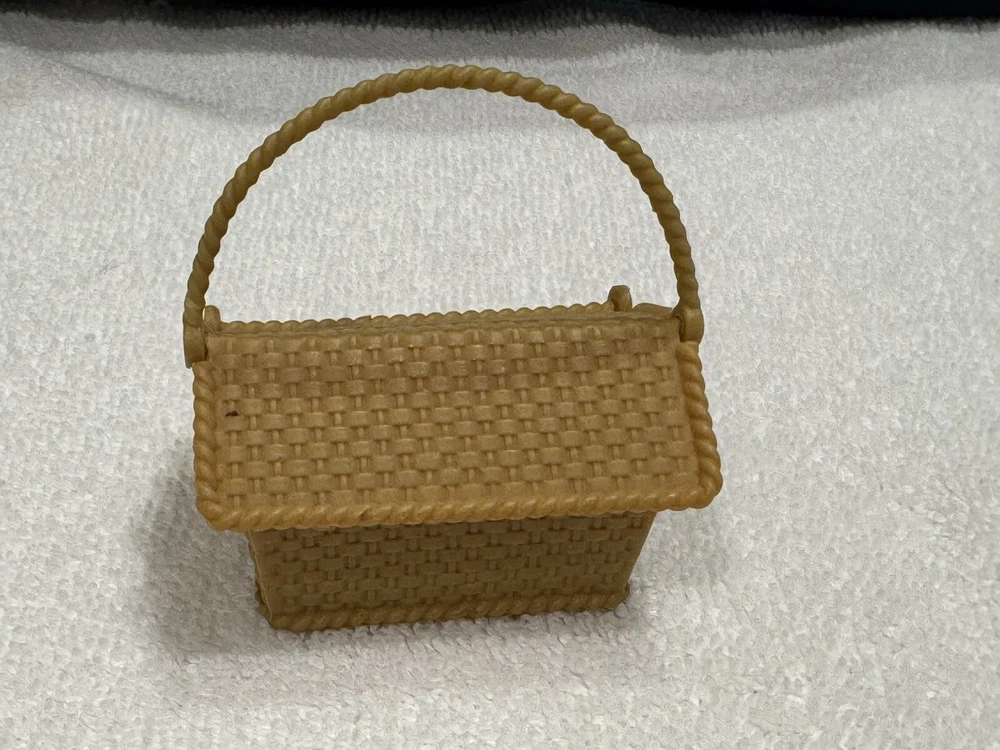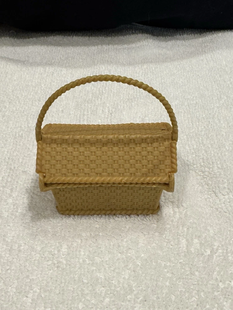 Barbie Dream House Picnic Basket Faux Wicker Brown/Tan Picnic Basket Hamper