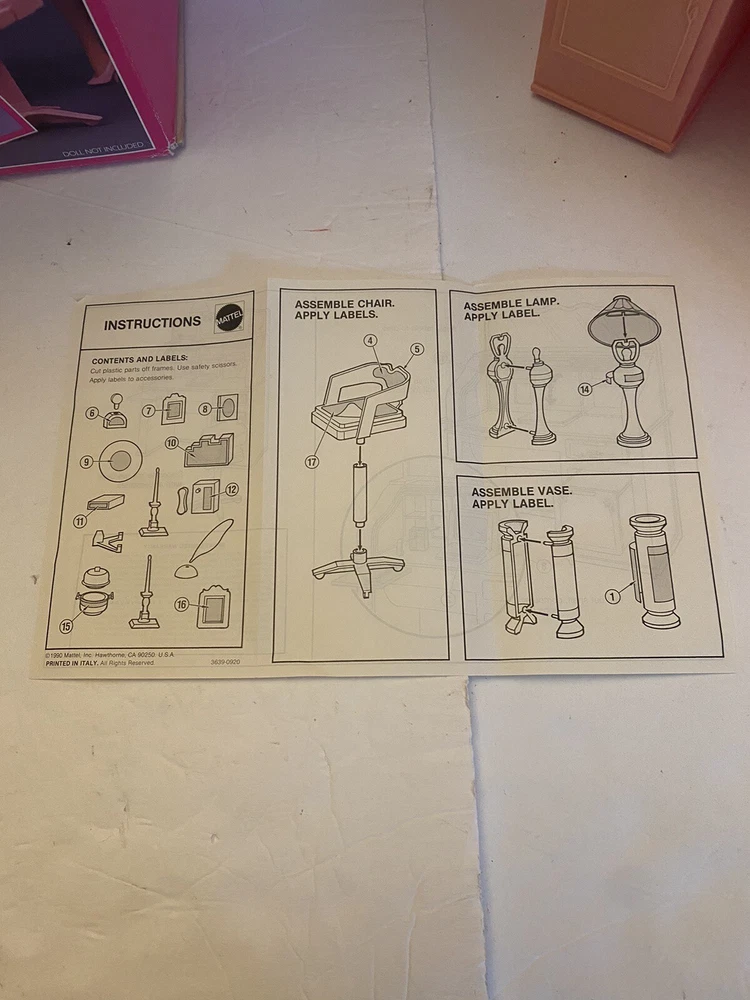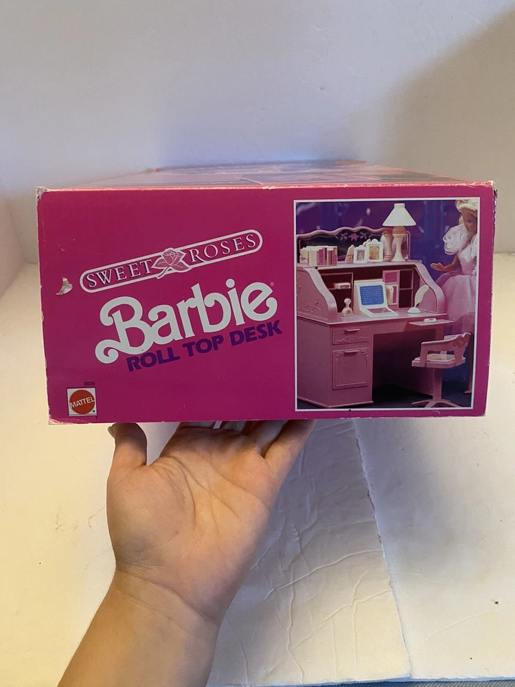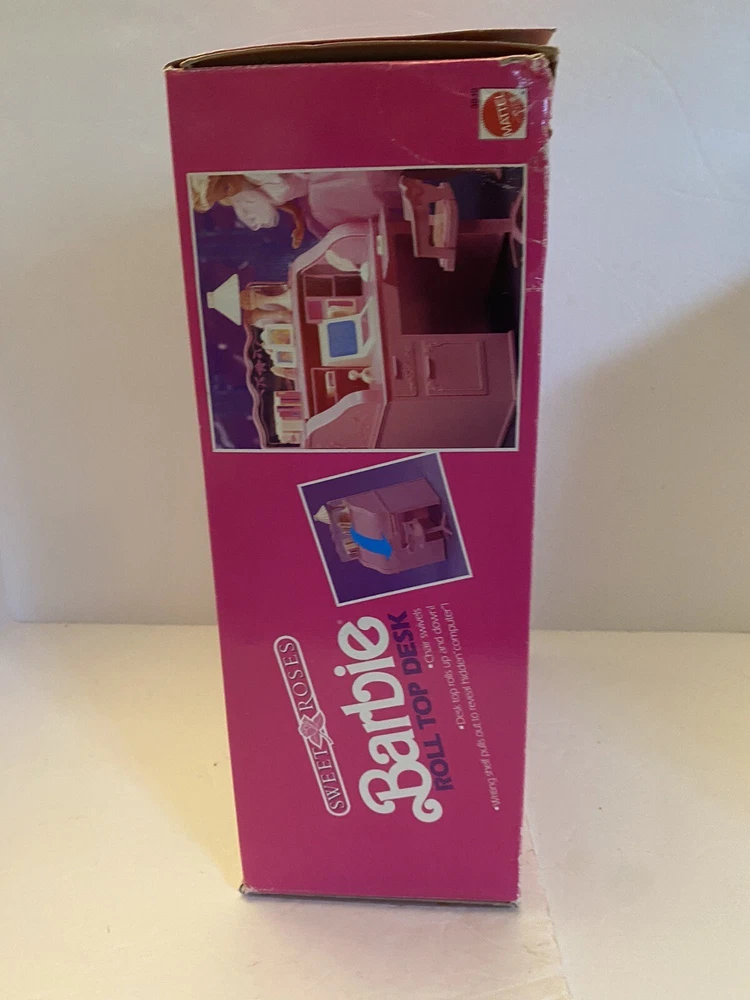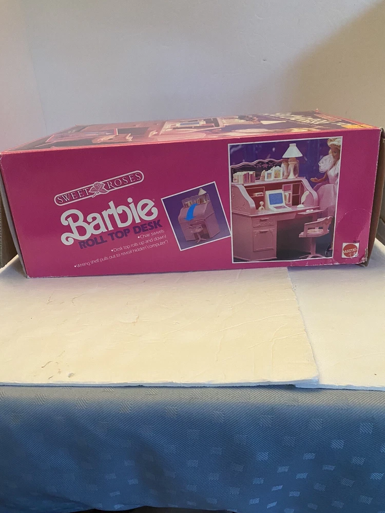 Mattel Barbie Sweet Roses Roll-Top Desk. Complete set with all accessories in original box with instruction booklet. Hidden computer and desk cover still functions well. Please let me know if you have any questions!