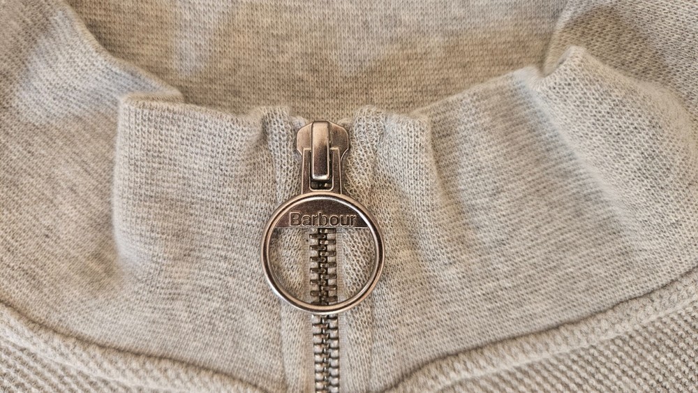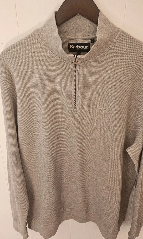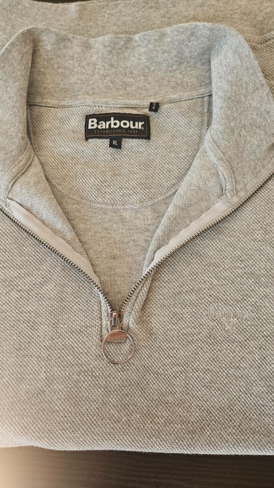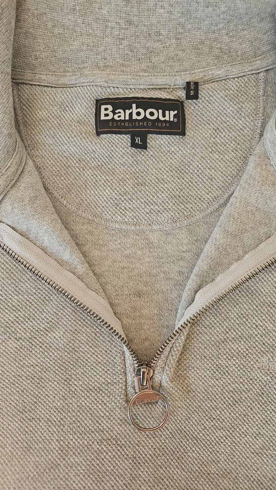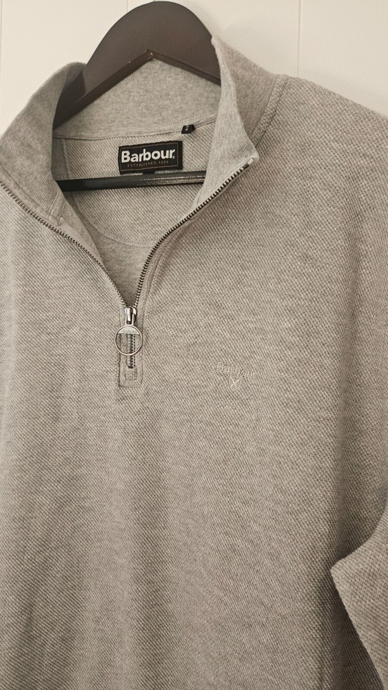 The Barbour Gray Quarter Zip Sweater in Size XL is a stylish and versatile addition to any man's wardrobe. Made from high-quality cotton, this sweater features a solid gray color with a mock neck and long sleeves, perfect for a business or office setting. The quarter zip design adds a touch of sophistication to the classic preppy style, while the Barbour logo accents give it a unique and timeless appeal. Whether you're working in the office or simply want a smart-casual look, this sweater is a must-have for the fall, winter, and spring seasons.