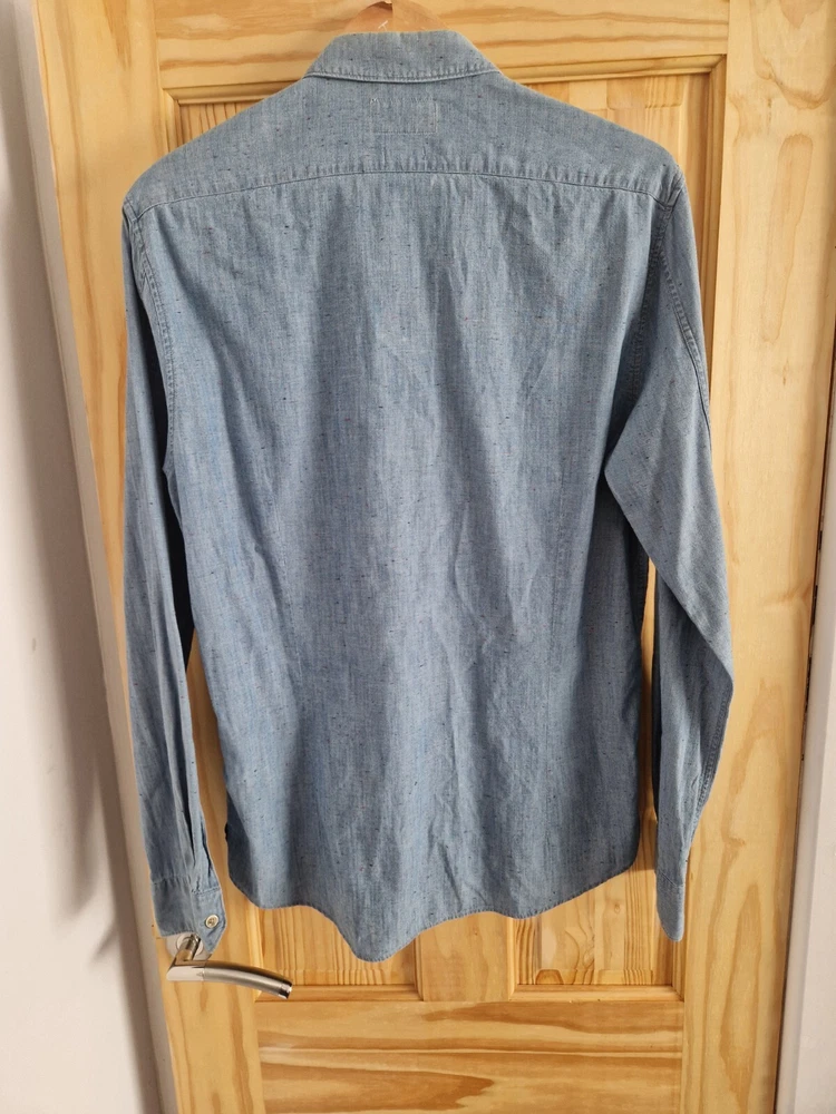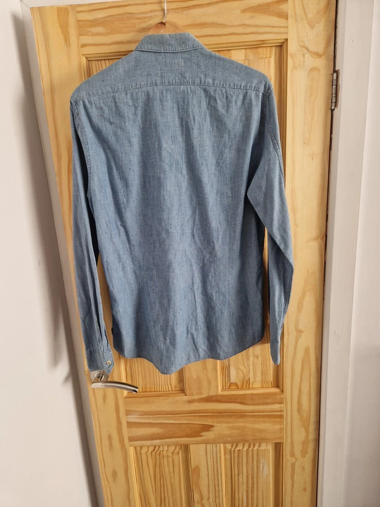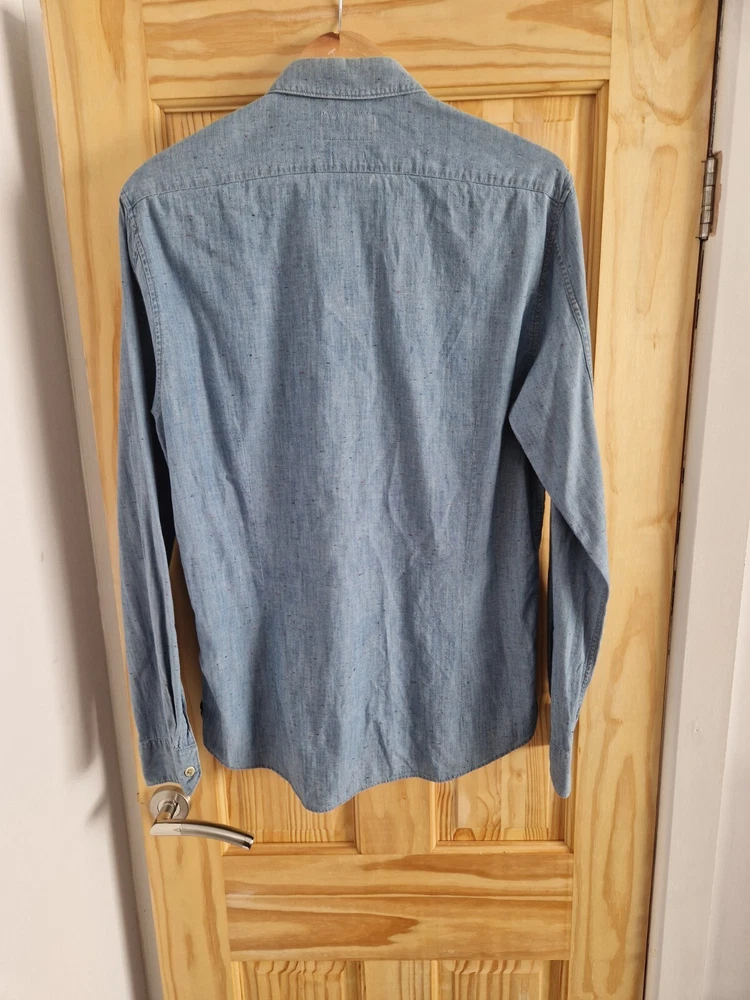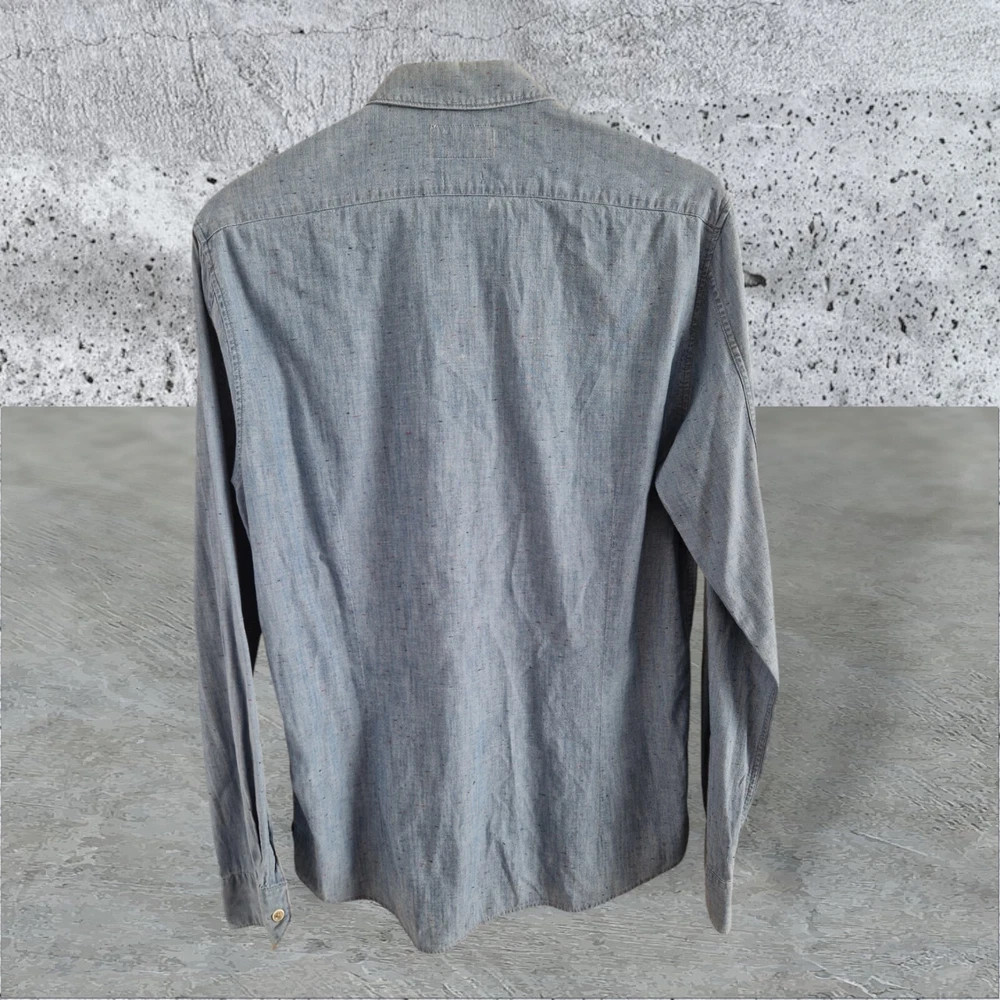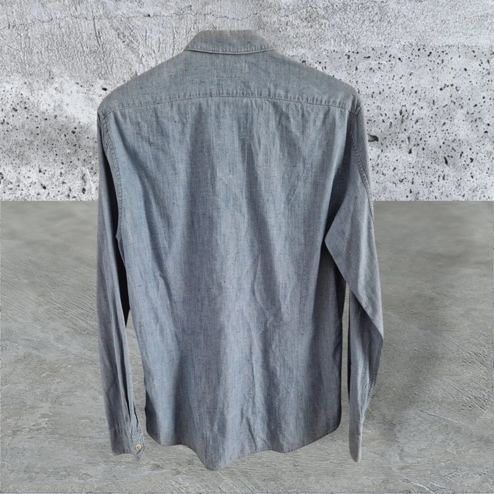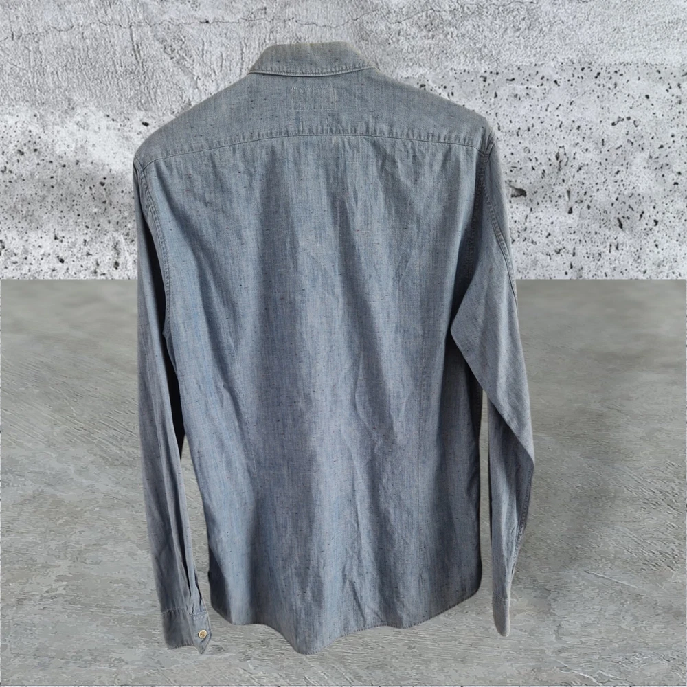 Pit to pit - 20 inches Length - 26 inches Crafted for the style-conscious individual, the Barbour International Denim Casual Shirt is a versatile addition to any wardrobe. The medium size ensures a slim fit, while the long sleeves and collared neckline offer a classic silhouette perfect for any casual occasion. Its solid medium blue hue is easy to pair with a variety of bottoms, making it a go-to choice for those who appreciate simplicity and quality. The shirt is made from a breathable cotton blend, which provides comfort across all seasons. Embroidered accents and button details add a touch of sophistication to this machine washable piece. Whether you're out for a casual meet-up or enjoying a laid-back day, this Barbour denim shirt will keep you looking effortlessly put together.