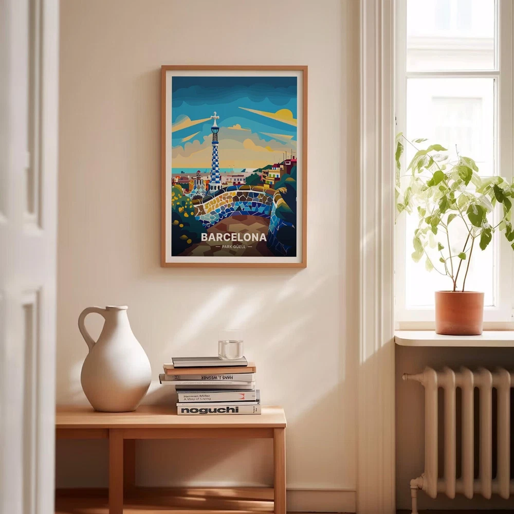 Barcelona Park Gell Art Poster Travel Wall Decor Unique Anniversary Gift Home Office Artwork C20 1167 Material: Premium luster photo paper Print type: Inkjet printing One side printed + The finish provides the highest possible resolution and color saturation + Lasts up to 200 years in color and 400 years in black-and-white + Printed on high-quality resin-coated photo base paper medium + Posters can be hung with double-sided tape, tacks, or framed + Hand washing with a gentle cry cloth is recommended for extended durability I will hand select the best choice of paper for your chosen design to ensure top quality results for a beautiful, bright and luxurious print. All prints are sealed in cellophane slips for protection during transportation, and are shipped in a protective cardboard envelope.