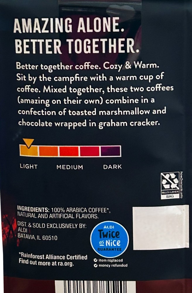 One bag of Barissimo Mocha Marshmallow ground coffee Brew Alone or Together for a S'Mores flavor! 100% Arabica Coffee Rainforest Alliance Certified Bag is 11 oz. Exp. 5/2/26 Light Roast Brew hot or cold!