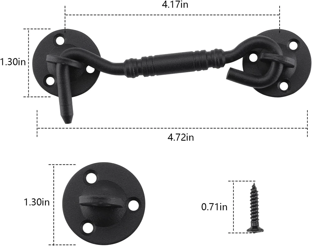 Store New Arrivals Add to Favorite View Feedback Contact Barn Door Hook and Eye Latch 4" Privacy Hook Lock Hardware Rust-Proof Gate Latch Cabin Hooks for Sliding Doors,Bathrooms,Outdoor,Windows,Bedrooms,Cabinet,2 Pack Black with Screws Description Style Rustic Theme Rustic Functional Hardware Batteries Included? No Size Name 2 Pack Batteries Required? No Finish Powder Coated Material Iron Maximum Weight Recommendation 35 Pounds Number of Hooks 2 Maximum Weight Capacity 35 Pounds Finish Type Powder Coated Package Dimensions 4.61 x 4.57 x 0.91 inches Item Weight 5.9 ounces Surface Recommendation General-Purpose Surfaces Special Features Rust Resistant Special Feature Rust Resistant Weight Limit 35 Pounds Mounting Type Wall Mount Color Black Recommended Uses For Product Door, Bathroom, Outdoor, Kitchen, Cabinet, Garage Included Components 2 pcs gate hooks, 2 pcs eyes, 12 pcs screws Size 2 Pack Premium material: Anti-rust hook door lock is made of solid iron.The gate hook and eye latch is guaranteed to be rust resistant, sturdy,durable and can be used anywhere Variety applications: Barn door lock hardware kit can be widely used on a variety of doors or Windows,such as sliding barn doors, garden wooden fences,garages,shutters,cabinets and other indoor and outdoor Easy installation: Designed with simple hook and latch construction for quick locking and unlocking Product Includes: 4 In decorative door lock hook includes 2 pcs gate hooks and eyes and 12 pcs screws Privacy and safe: The latch locks can prevent the wind from opening the barn door and does not unlock automatically when force is applied to the door ABOUT US We offer the best prices around on high quality products. Our E-store includes media such as books, movies, music and games while offering electronics, toys, sporting apparel, clothing, tools, general home, garden items and more. SHIPPING We are always working hard to ensure your package arrives as soon as possible. Please understand that some factors like weather, high postal traffic, and the performance of shipping companies are outside of our control. We offer free shipping to the lower 48 states and ship within 2 business days of payment, usually sooner. We do not accept P.O. Boxes. Please provide a physical address. For shipping outside of the continental USA, we only use eBay's Global Shipping Program.The item is shipped to KY and then sent to the rest of the world. International customers are responsible for all duties and taxes. Continue to check out in order to calculate costs for shipping the item to your country. Messages regarding eBay's Global Shipping Program MUST be directed at eBay EXCLUSIVELY. RETURNS We offer a 30-Day Return Policy on items which you are not completely satisfied with. You have the option for a full-refund or an exchange of the item. No returns are available on items shipped outside of the USA. PAYMENT We accept PayPal. CONTACT US This page content is yet to come Please ad us to your favorite seller and visit again later Thank You CUSTOMER SATISFACTION We try our very best to make sure every customer is completely satisfied. If there's a problem, message us! We're happy to help. WE ACCEPT Copyright © 2021 AutoDS. | All Rights Reserved