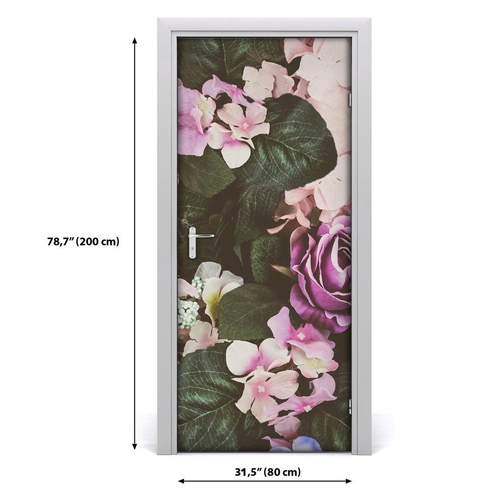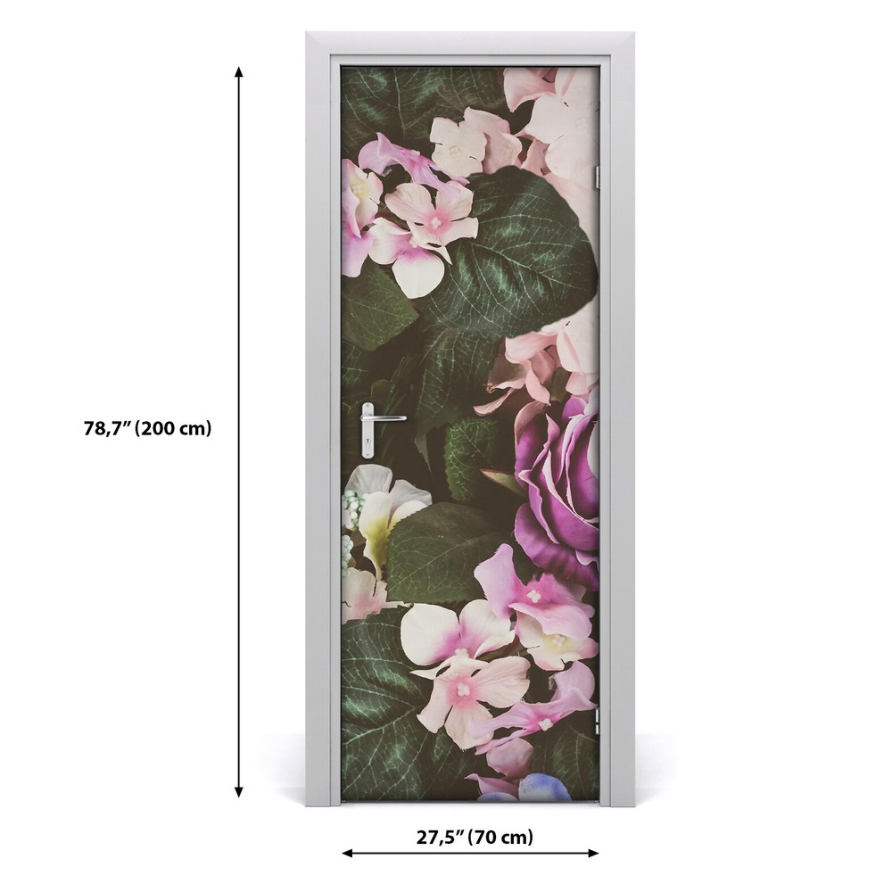Tropical flowers Bubble Free Door sticker blue and green Home Decor