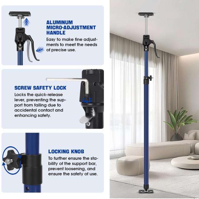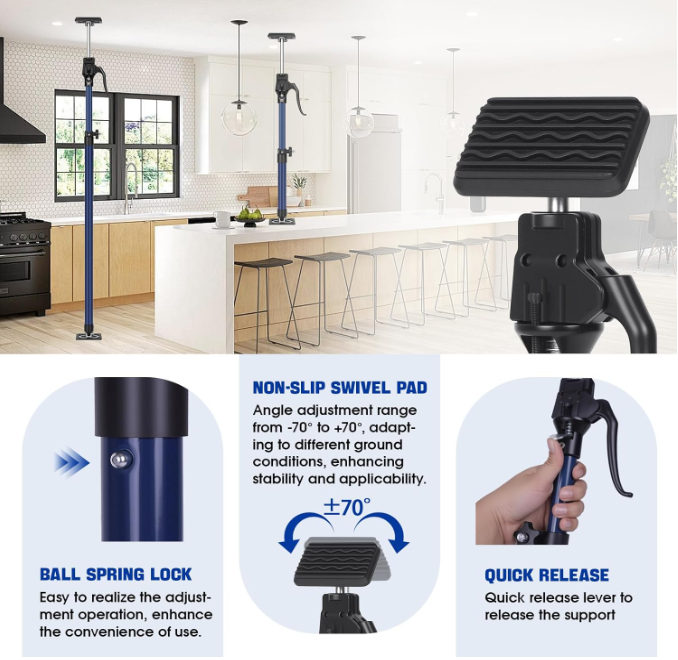Barras de soporte para gabinetes (15-23 pulgadas): Capacidad de carga de 154LB, incluye almohadillas antideslizantes, set de 2 piezas. 🔹 DISEÑO DEL PRODUCTO : . El gato para paneles de yeso está fabricado con materiales resistentes, con pasadores con resorte, un tubo interior y una perilla de bloqueo que garantizan una durabilidad y seguridad excepcionales. . El mango ergonómico de la bomba simplifica su uso. 🔹 MÚLTIPLES USOS : . El gato para gabinetes ofrece una amplia gama de aplicaciones, ideal tanto para proyectos de bricolaje como para las necesidades de trabajadores de la construcción y personal de mantenimiento. . Puede funcionar eficazmente como gato para gabinetes, gato para paneles de yeso, soporte para molduras de corona y más. 🔹 ESTABILIDAD : . La base del poste de soporte es ancha y plana, lo que proporciona una amplia superficie de contacto con el suelo. . Además, incorpora acolchado antideslizante y revestimientos en las superficies de contacto para mejorar la fricción y evitar deslizamientos. 🔹 ALTURA Y ÁNGULO AJUSTABLES : . La barra de soporte se expande de 40 a 60 cm (15 a 23 pulgadas) con una capacidad de peso de 70 kg (154 lb). . La inclinación máxima no debe superar los 45 grados. . Se ajusta fácil y rápidamente a diferentes alturas y ángulos, lo que la hace adecuada para diversas aplicaciones. 🔹 MANOS LIBRES : . El poste de soporte rápido ofrece una solución práctica para asegurar los materiales de construcción durante la instalación de un solo gabinete, proporcionando una ayuda adicional eficaz. Terms of Sale and Feedback: Feedback is extremely important to us and eBay If you are satisfied with our transaction, please take a moment to leave Positive Feedback. YOUR Satisfaction is our #1 Priority! If there are any issues, PLEASE contact us BEFORE leaving a neutral or negative rating so that we may resolve any concerns. We PROMISE we can make you happy if you give us a fair chance.