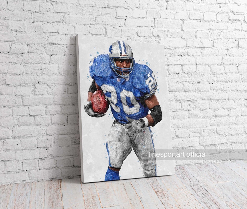 Barry Sanders poster in Detroit Lions uniform? Yes! We have the best selection of sports posters, canvas prints and wall art for sale. This print will be a great gift for any football fan. QUALITY : *Premium Posters - Museum-quality poster made on thick and long-lasting matte paper. - Paper weight: 200 gsm / 80 lb - Professionally Printed on Epson EP Premium. - Shipped in sturdy packaging protecting the poster. *Canvas Stretched - Cotton canvas composite with a special proprietary coating. - Inner frame made with radial pine sourced from renewable forests. - Soft rubber dots on bottom back corners for support. - High image quality and detail. - Back hanging included. SHIPPING INFORMATION: - FREE SHIPPING on all prints. ✉️Please contact me if you have any questions! DISCLAIMER: "My sports prints are created with my own artistic interpretations using a graphic editor. Any brand names, logo or trademarks used herein remain the property of their respective owners. The listing of any company, drawing, quote and/or their logos is not intended to imply any endorsement or direct affiliation with said company."