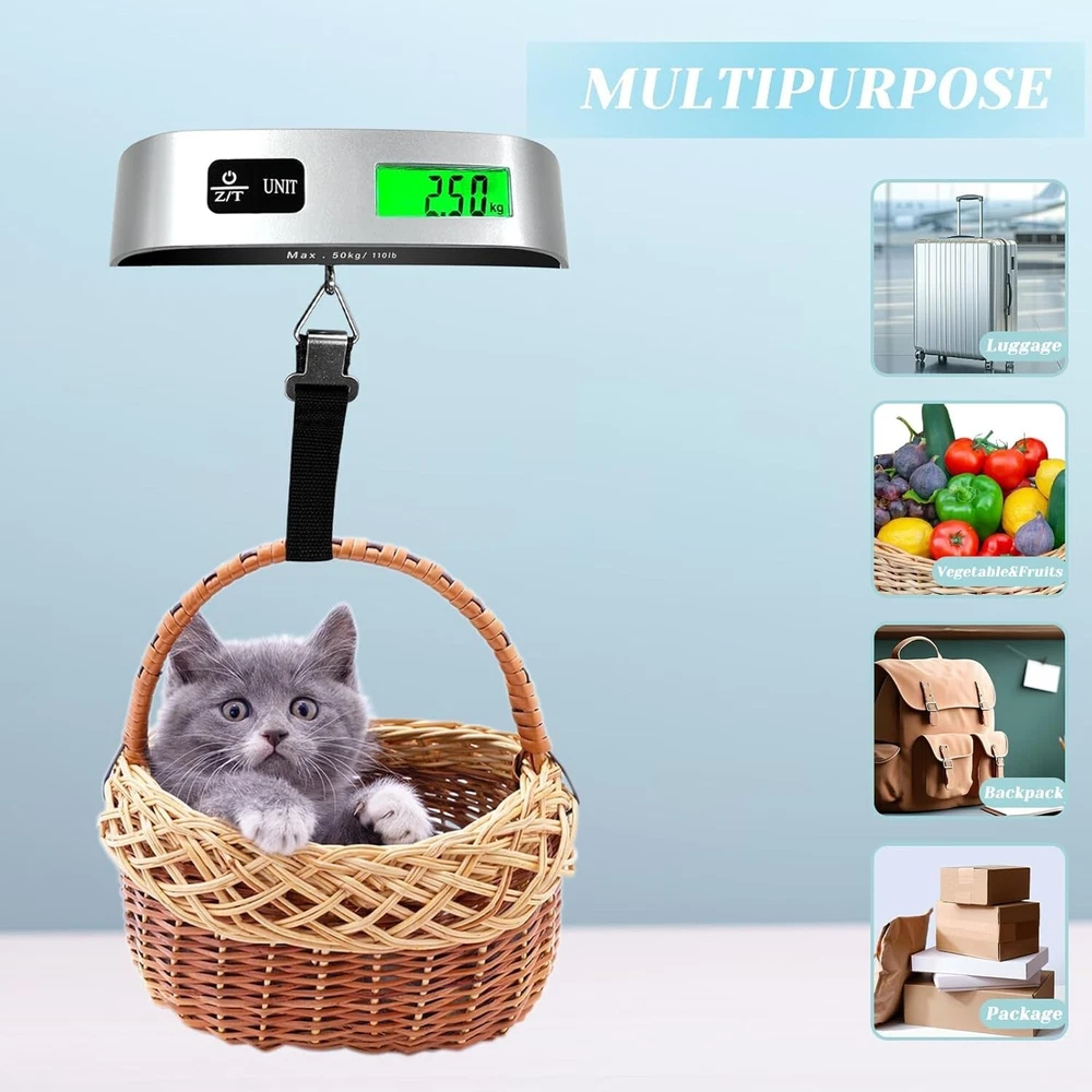 Bascula pesa maletas equipaje de mano Digital. para Pesar peso equipaje About this item: [MULTI FUNCTIONAL SWITCHING MODE] - Luggage scale can withstand a maximum weight of 110 pounds and can accurately measure up to 0.02 pounds/10 grams for you. The luggage weight scale also has four unit conversion functions for grams and pounds: lb/kg/F/C, meeting your different needs. When you use it, there is no need for complex operations, just press the switch button easily to switch to the unit you want, bringing you comprehensive convenience in any situation. [MEETING THE NEEDS OF TRAVELERS] - Luggage scale travel digital is very easy to use. Firstly, Turn on the button. Secondly, click the UNIT button to select the unit you need. Then, press the Z/T key to reset the weight to zero. Finally, place the item on the container to easily obtain accurate net weight data after peeling. The simple operation brings you a pleasant travel experience. [LIGHT UP YOUR DARK VISION] - The suitcase scale with a green backlight LCD display is suitable for the elderly and children, and the large screen can accurately read values. It can provide night light mode in dark environments, providing visual protection for you. Compared to travel enthusiasts, it is an indispensable and excellent product. [MAINTAIN LONG-TERM USE] - Travel scale has overload alerts, It can enable you to receive overload reminders in advance and ensure the stability of your use in any situation. In addition, the luggage scale is energy-saving and will automatically turn off after 60 seconds of inactivity, allowing it to maintain long-term use. It is an indispensable companion during your travels.