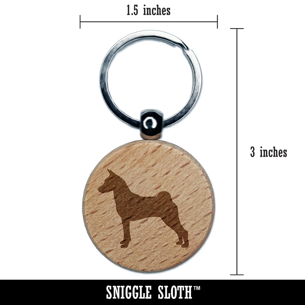 Basenji Dog Solid Engraved Wood Round Keychain Tag Charm