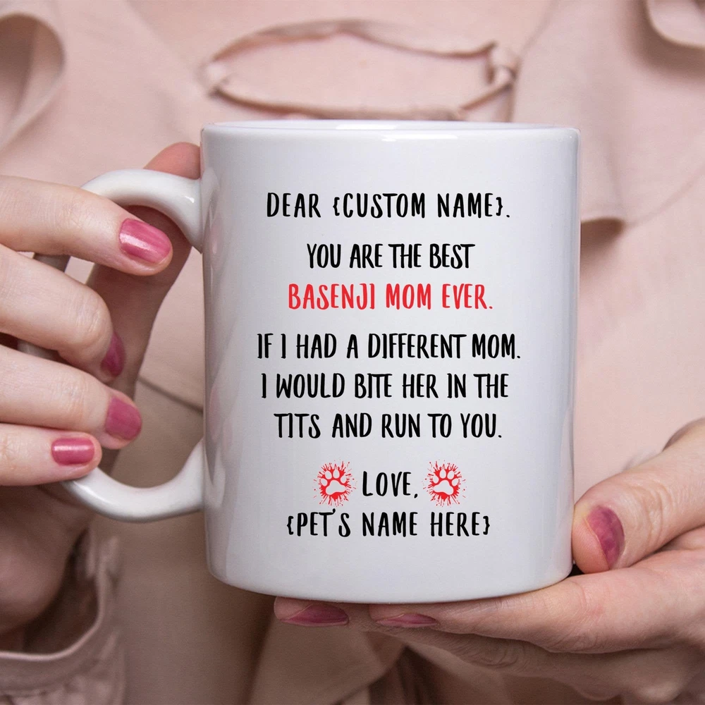 Basenji Mom Gift Personalized Mothers Day Gift Mug Custom Name Gifts For Dog Mom Product Details.. This high quality 11oz. ceramic white mug has a premium hard coat that provides crisp and vibrant color reproduction sure to last for years. Perfect for all hot & cold beverages. The highest quality printing possible is used. It will never fade no matter how many times you wash it. Material: 100% Ceramic. Print both sides. Dishwasher and Microwave Safe. High Gloss + Premium White Finish. Printed in the U.S.A. Personalized & Custom. We support personalized and custom mug to add custom, when placing an order, you can add notes to the "order note" in shipping address section. Also you can contact us directly via message. Shipping Info. Ready to ship in 1 to 2 business days, All products are made-to-order and proudly printed in the United States. Shipped by USPS and DHL, You will receive your order in 5-7 days. Replace & Refund. All products are defective during shipping broken, chipped will be replaced free of charge. You are not satisfied with the product, we will refund 100% money to you. If any other issues arise, please do not hesitate to message, we would be more than happy to assist you.