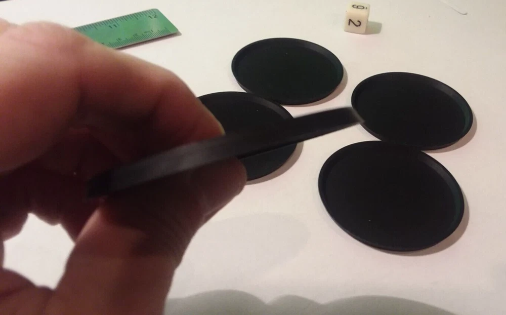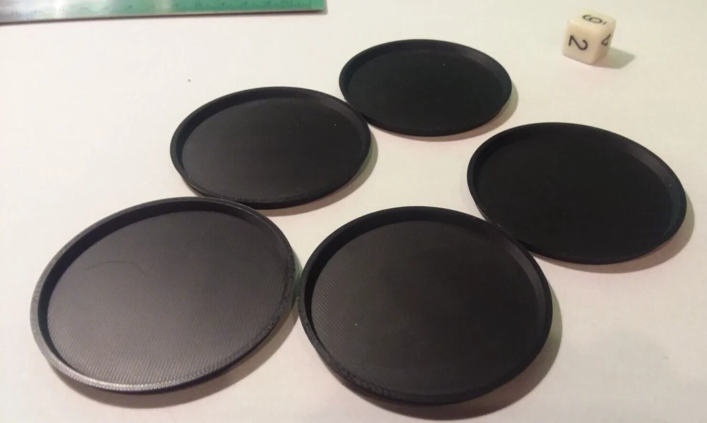DESCRIPTION This is a listing for FIVE (5) 65MM ROUND BASES , suitable for Warhammer 40k, AOS Bitz Heavy Gear, Dungeons & Dragons, Pathfinder, and similar type games. The measurement is taken from the bottom (top surface of base is a circle slightly less than 65mm, bottom circle is exactly 65mm). The bases are 4mm high. If you want fast delivery, go to my store and buy the base listing that uses USPS Ground Advantage shipment. SHIPPING NOTE: This uses Standard Envelopes for shipment. You will need to be patient with Standard Envelopes as Ebay does not offer the same tracking as USPS Ground Advantage. It will show as Delivered, but you must wait a few more days for it to arrive after the Delivery date. This is not me - this is EVERY seller using Standard Envelopes. The other sellers just don't tell you the potential issues! This is why I can sell these bases at a good price - shipping is SLOW! CONDITION - NEW The bases are brand new. OTHER BASES I CARRY See my other listings. I carry these bases as well: 40mm Round Bases 50mm Round Bases 65mm Round Bases 80mm Round Bases 90mm Round Bases 100mm Round Bases 130mm Round Bases 160mm Round Bases SHIPPING INFO All orders shipped out next business day. By default, I ship the bases in a Standard Envelope. OTHER INFO All items come from a smoke-free home. Email if you have questions or want to request custom sizes for bases. Look at my other listings for Warhammer and D&D related material. Thank you for viewing!