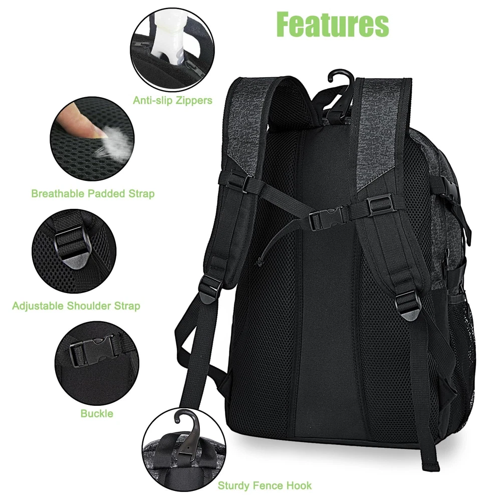 【Fabric】: The basketball backpack is made of durable 100% polyester material,water-resistant.reinforced stitching provide strength and durability for sports enthusiasts,multifunctional and easy to clean 【Large Capacity】:Basketball bag keeps everything organized and in one spot,ball,clothes,water bottle,key,wallet,shoes,even your laptop 【Padded Shoulder and Back】:Padded parts provide comfortable carry,great reduce pressure for shoulder and back from the back pack 【Full-size Ball Compartment】:Big ball compartment for basketball,football,volleyball,can use as soccer backpack,tennis backpack,work or daily use 【Attention】: If this sports bag is equipped with tennis rackets, it will be somthing crowded to carry football or basketball. Please with us if you have any doubt with our backpack, we will be there for help